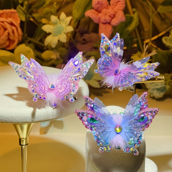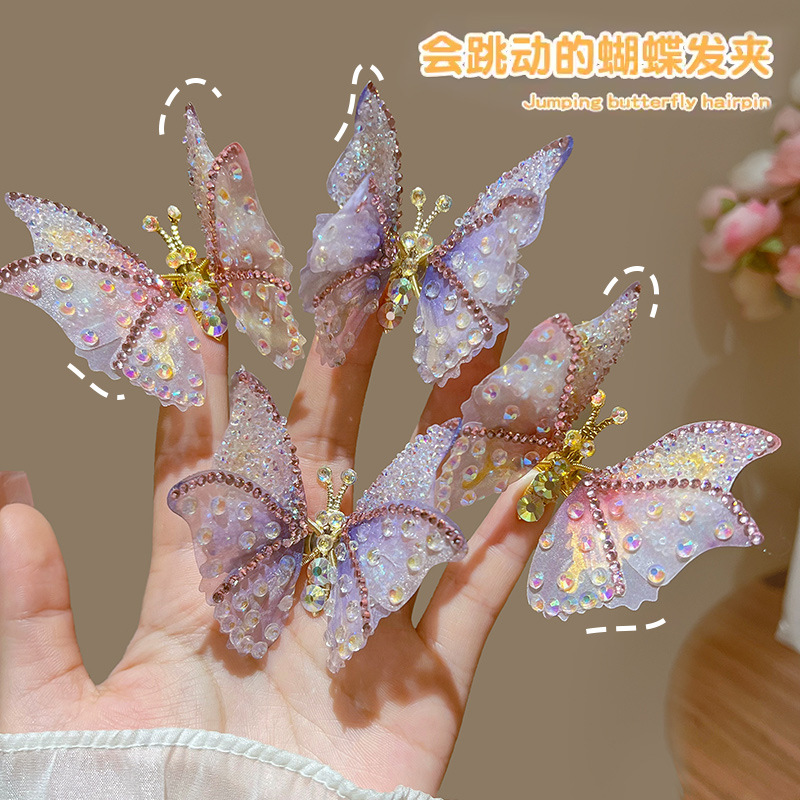 2025新款跨境儿童超仙精致女童会动的立体蝴蝶发卡小女孩甜美发夹