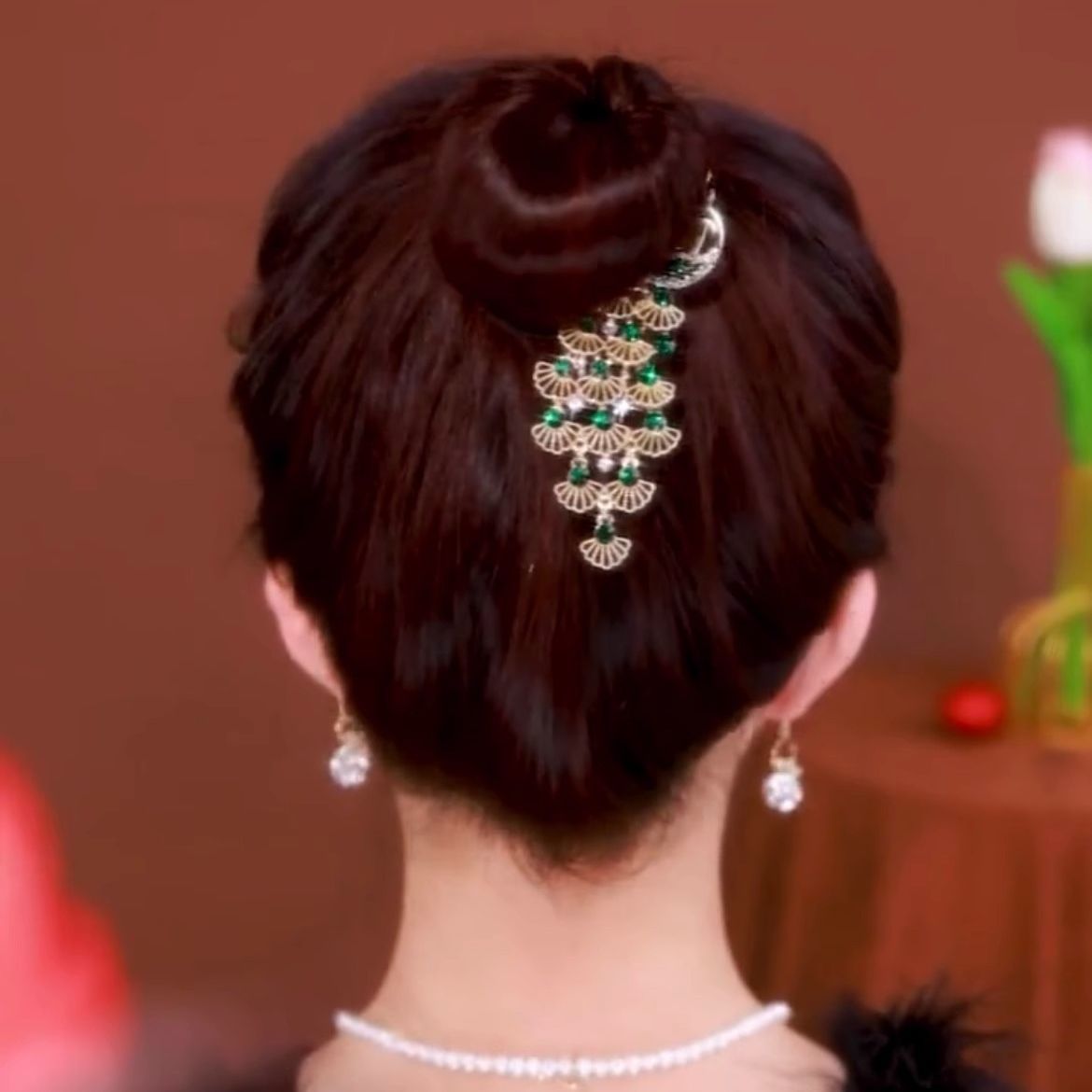 高级感エレガント孔雀のお団子の髪饰り髪カチカチ髪饰り女性后头部高额丸子ヘアピン大人レトロ
