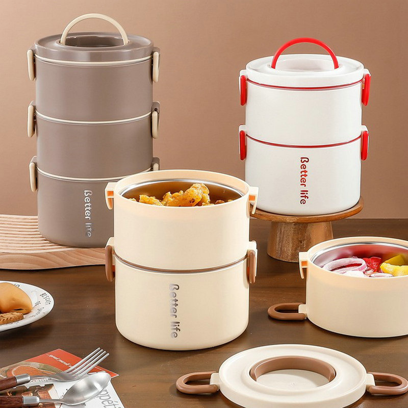 現物供給学生党高颜値保温弁当箱ステンレス円形密封多層携帯弁当箱弁当箱弁当箱