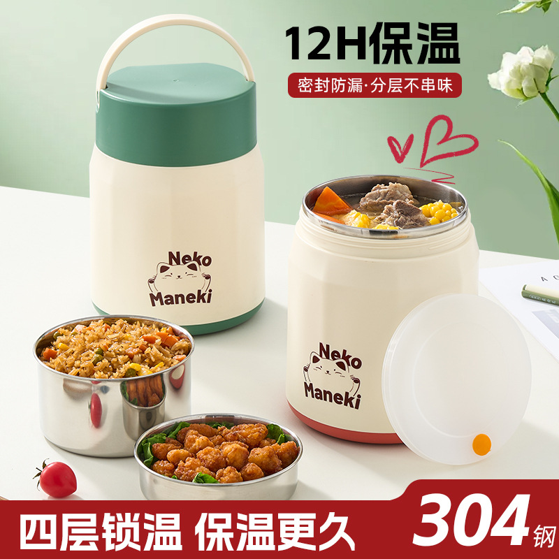 冬の超長真空保温桶提鍋304ステンレス弁当箱学生大容量多層弁当箱