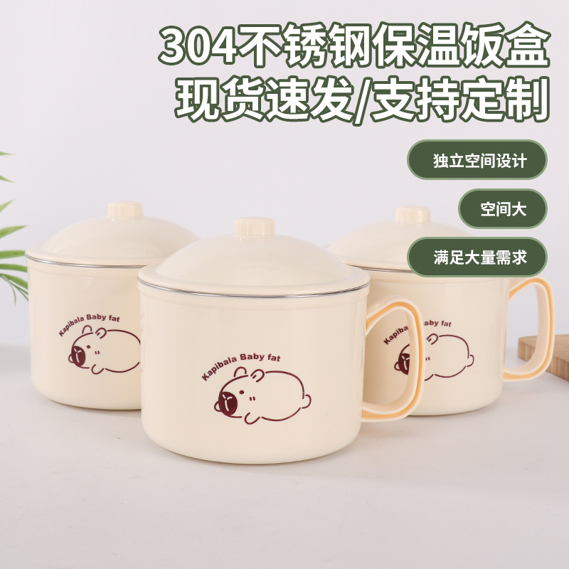 ステンレス304ファーストフードカップサラリーマン・学生寮カップラーメン蓋付き成人携帯大容量ファーストフードカップ