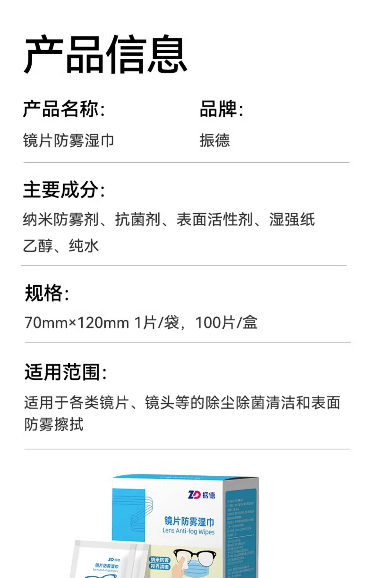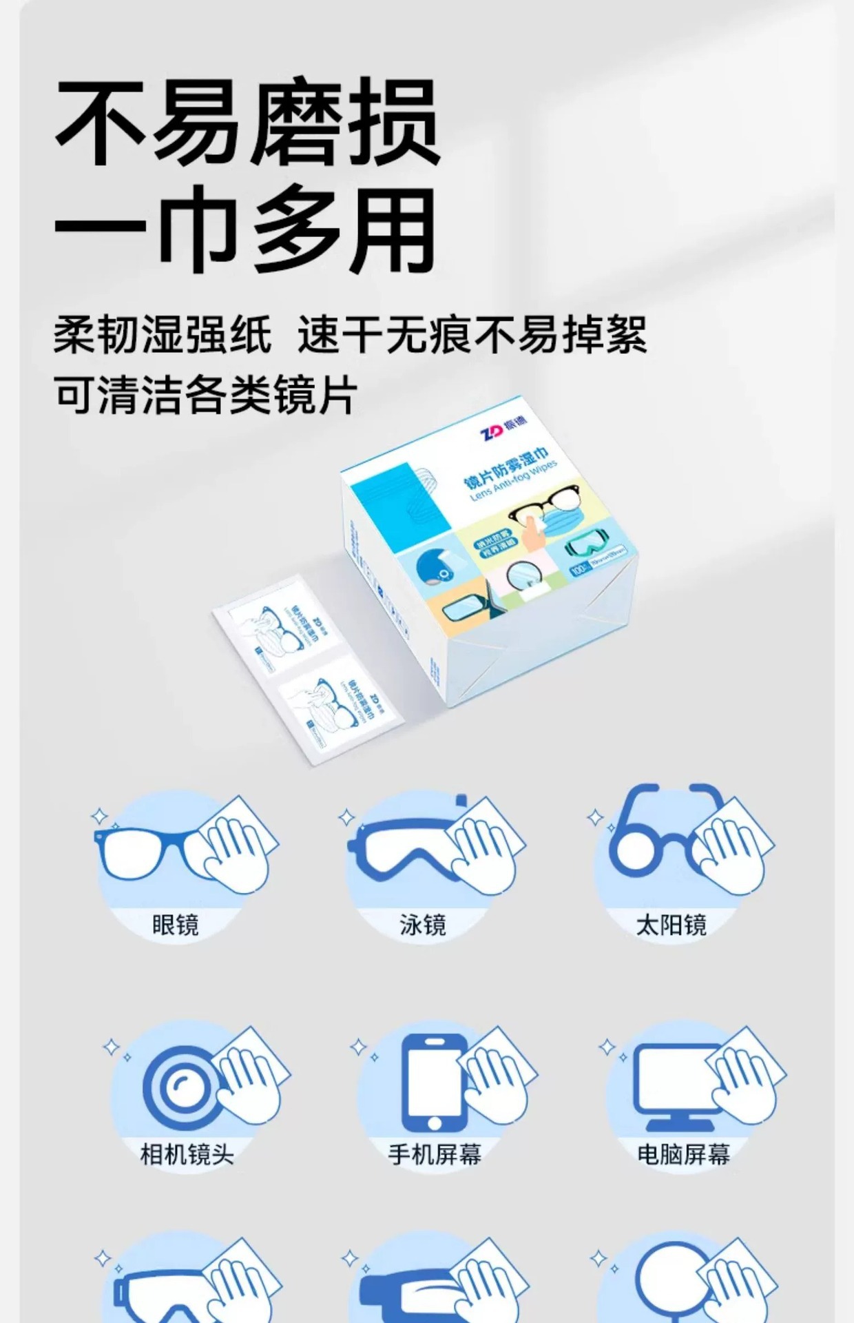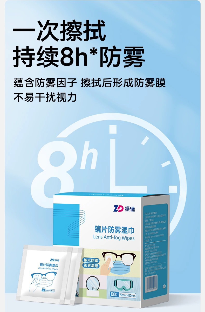 Zhende 防曇レンズクリーニングワイプ 7*12 使い捨て防曇ワイプ除染速乾性本物の卸売