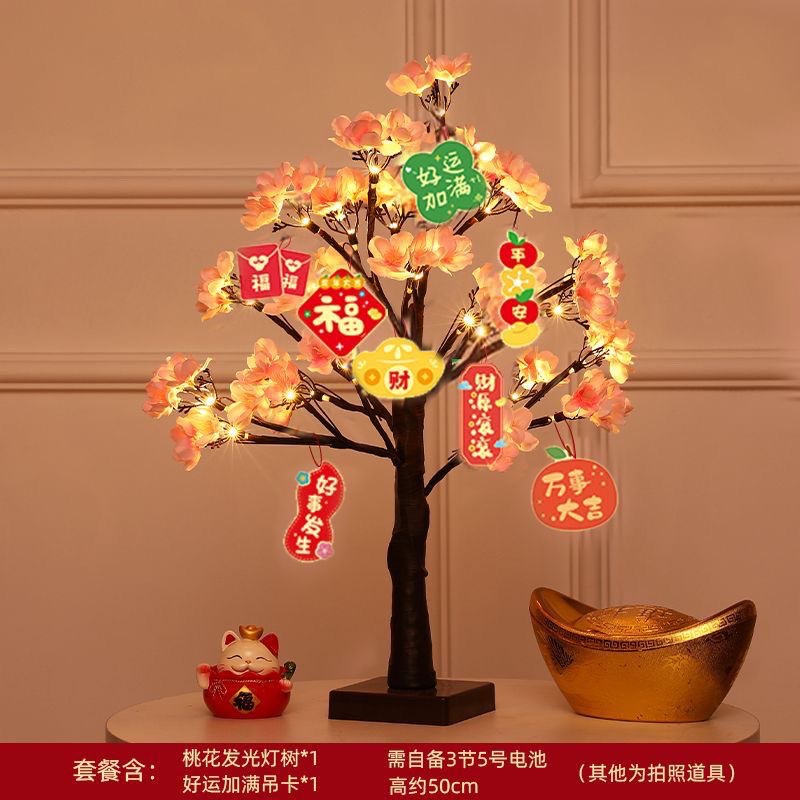 春节用品桃花树灯笼带灯发光装饰灯家庭乔迁新居客厅布置led灯