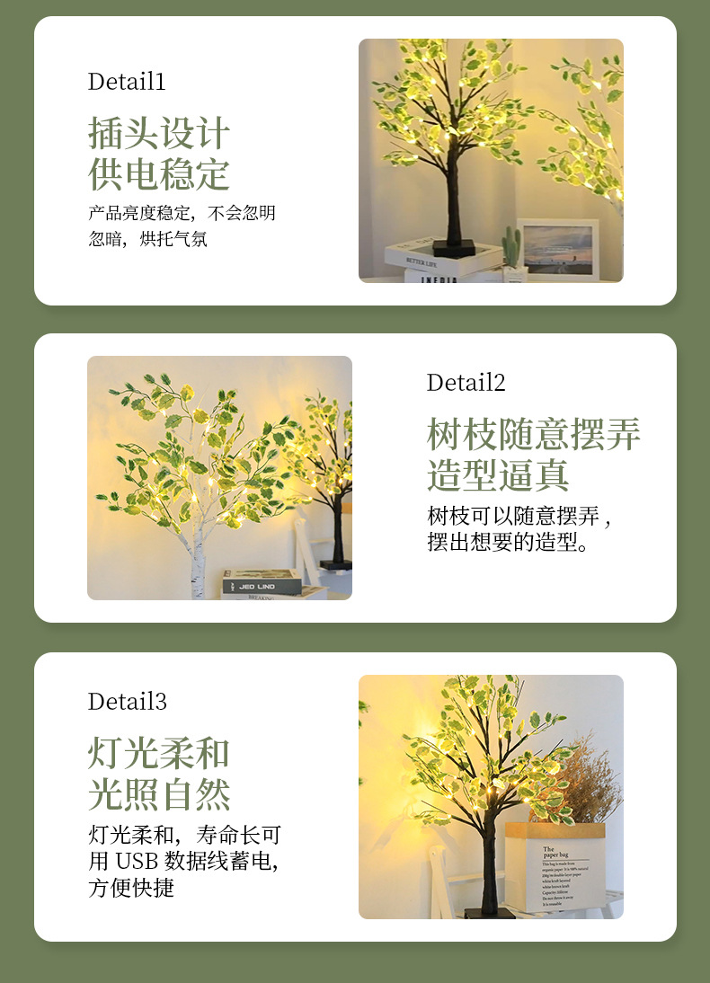 LEDシミュレーション木の葉樺樹灯串家装飾シーン配置背景小樹灯クリスマス装飾小夜灯