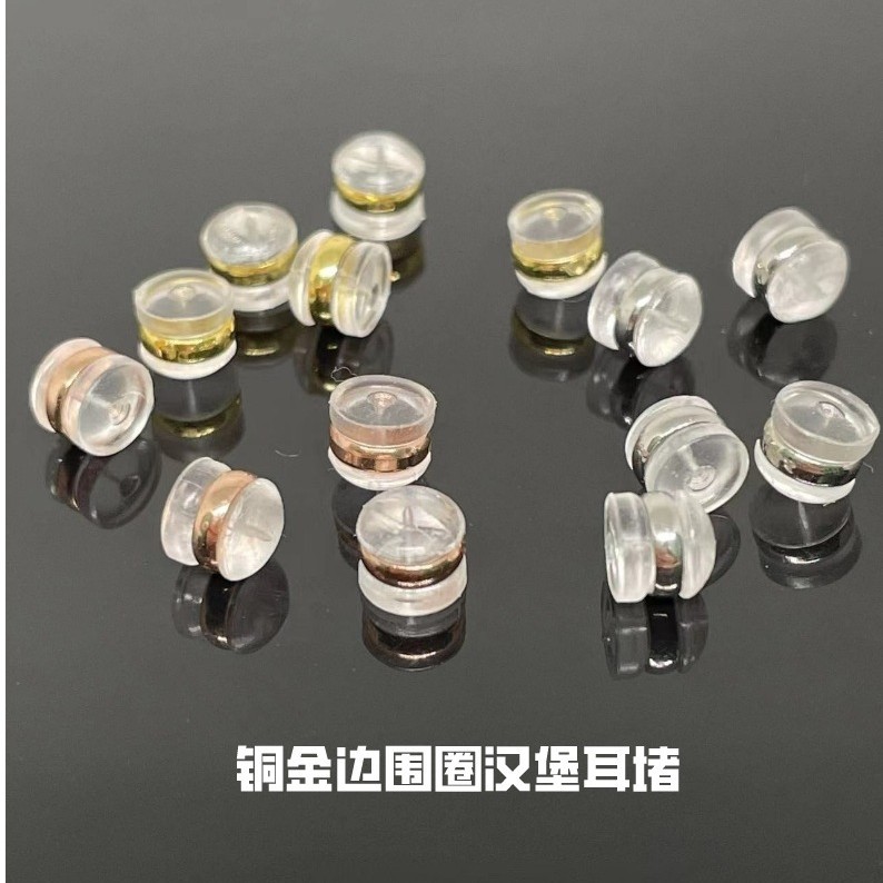 銅金縁バーガー型耳栓DIYイヤリングアクセサリー透明プラスチック落下防止韓国風耳後ろ留め具卸売