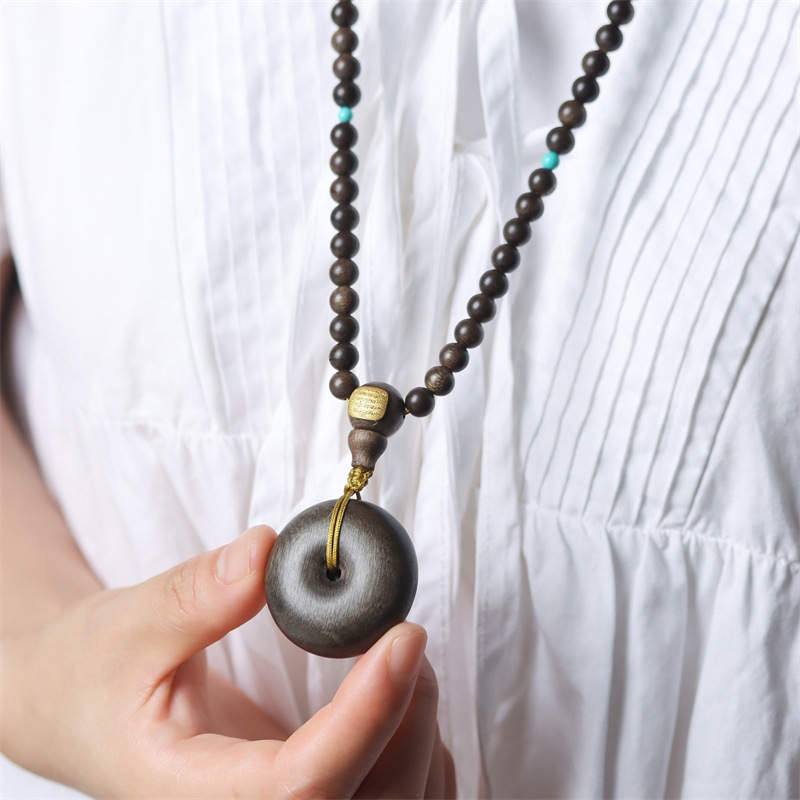 檀木転銭福袋自動車キーホルダー男女創意六字真言銭袋鍵掛けストラップ