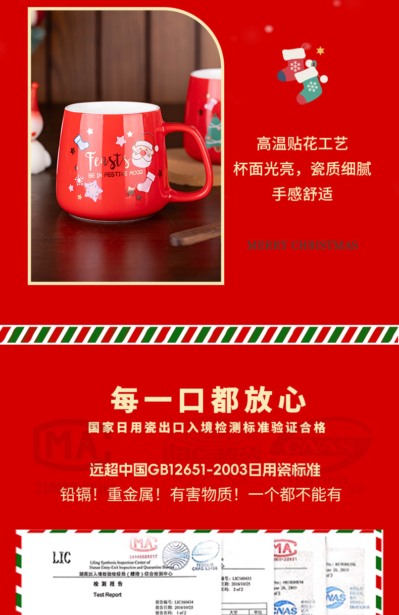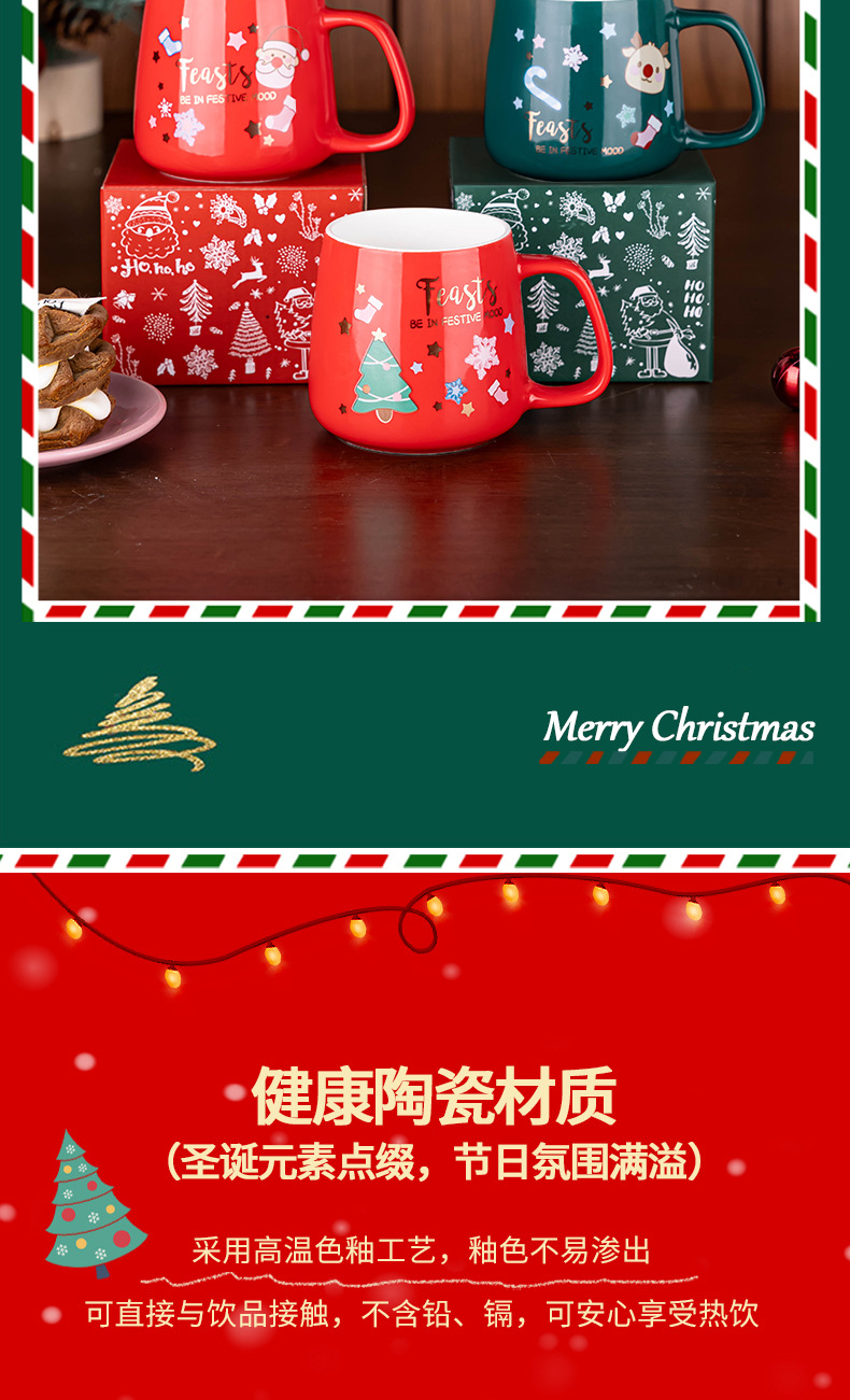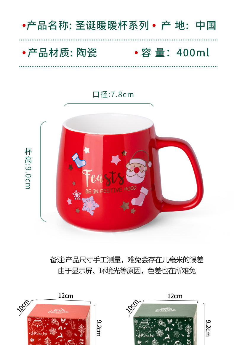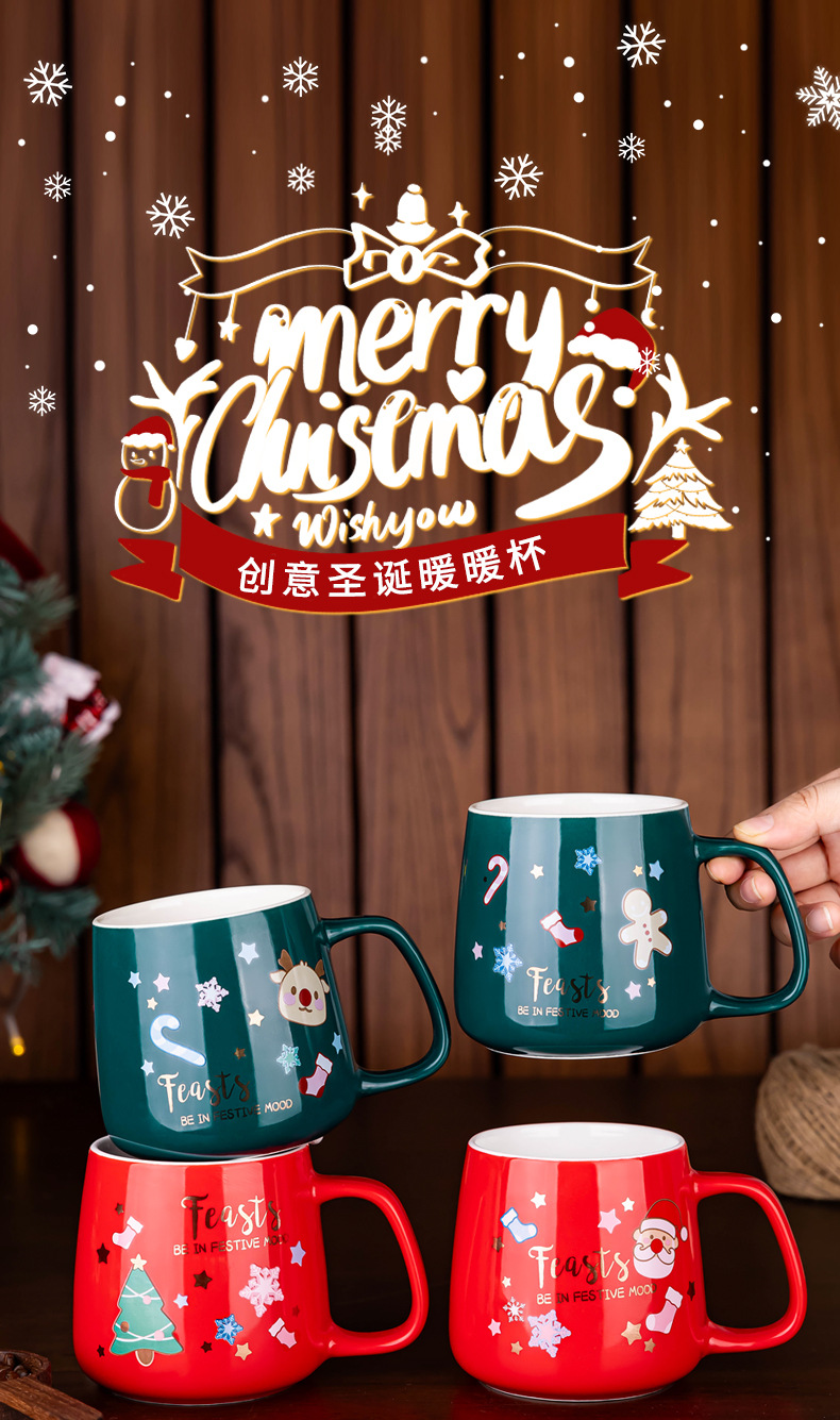 跨境可爱圣诞节礼品马克杯卡通高颜值陶瓷杯节日伴手礼水杯子定制