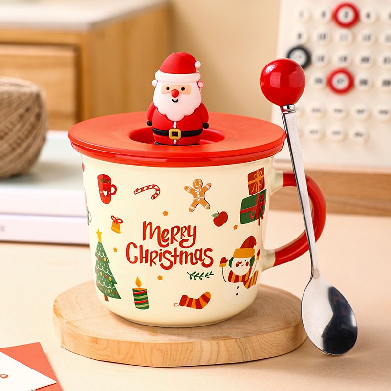 クリスマスカッププレゼントプレゼント陶磁器カップ蓋付きスプーン付きクリスマスプレゼントマグカップセットコッププレゼント