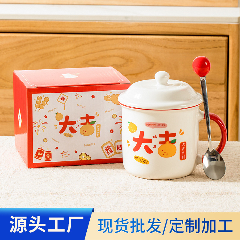 セラミックマグカップ蓋付きスプーン付き日本式コーヒーカップカップルカップ朝食カップ飲水カップギフトカップカスタムロゴ