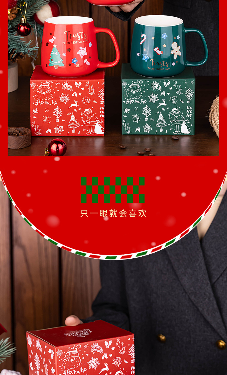 跨境创意圣诞礼物杯子陶瓷马克杯伴手礼新年商务小礼品高级感定制