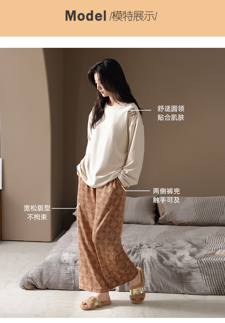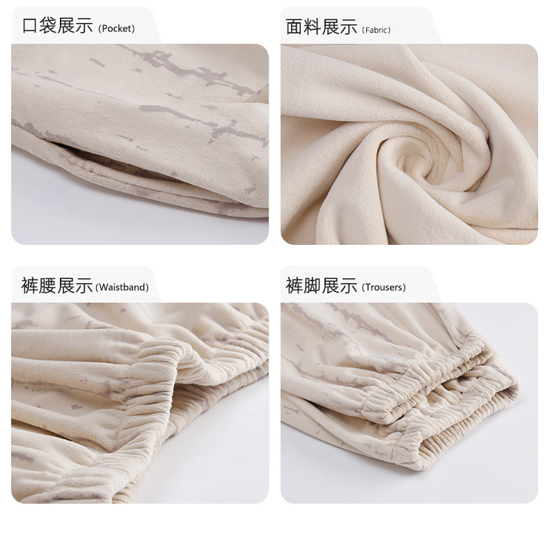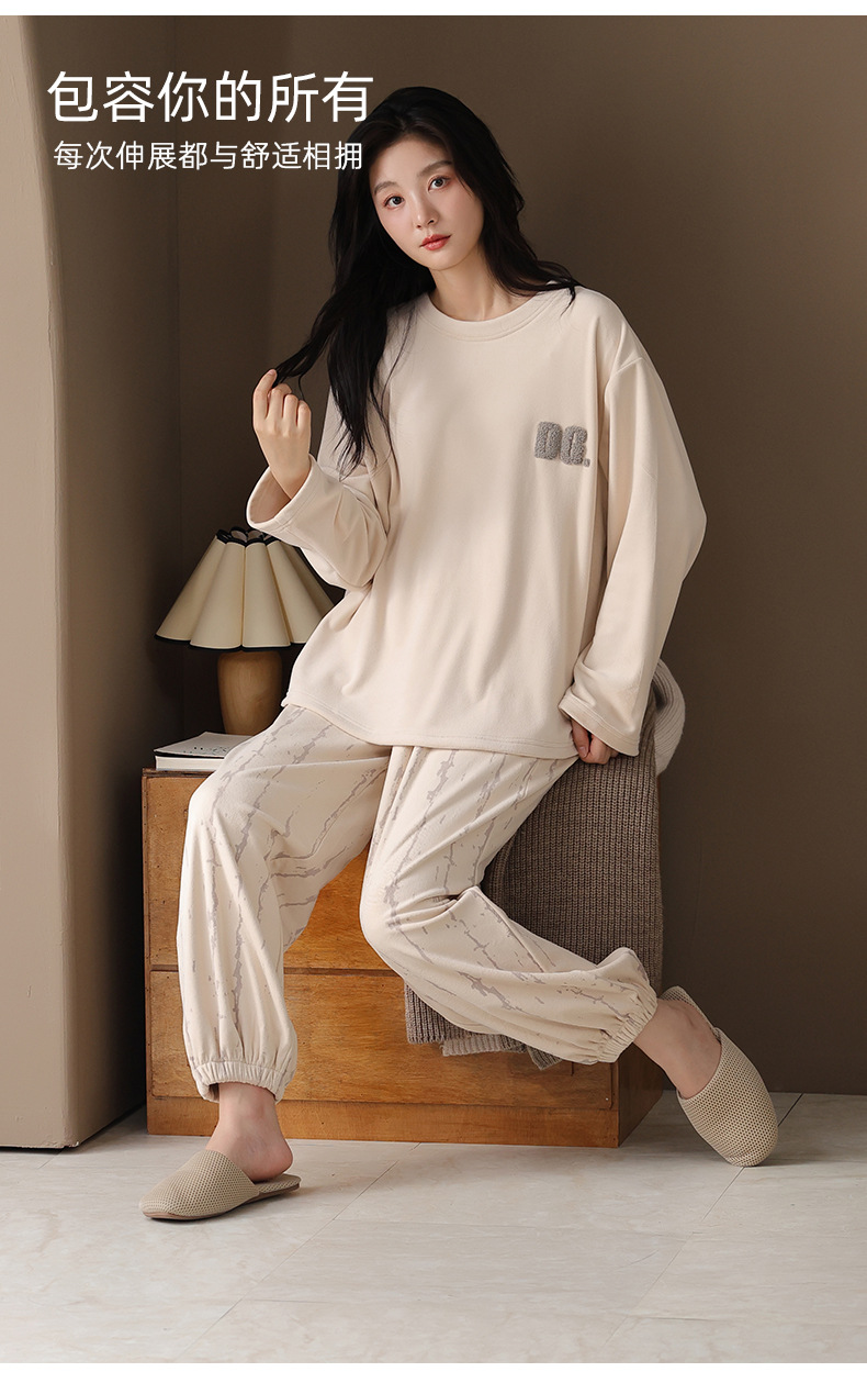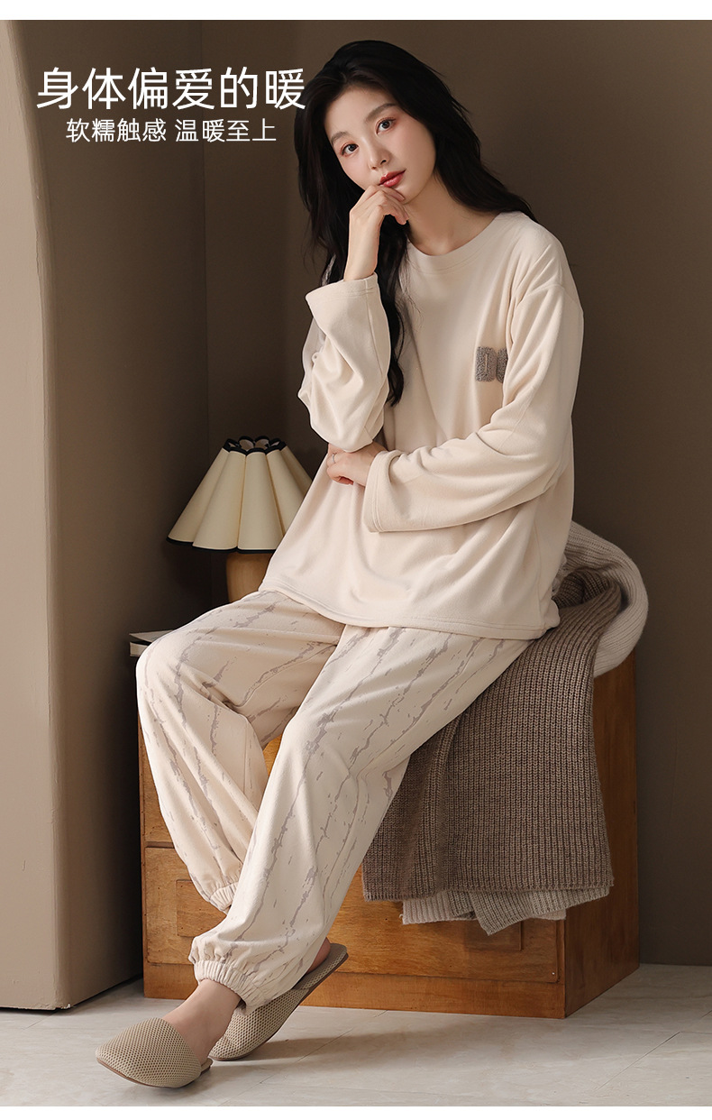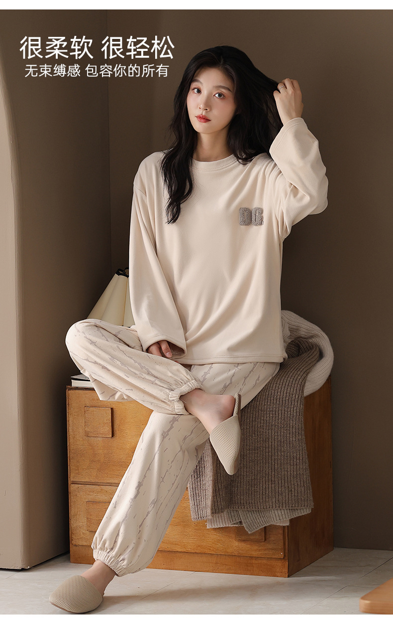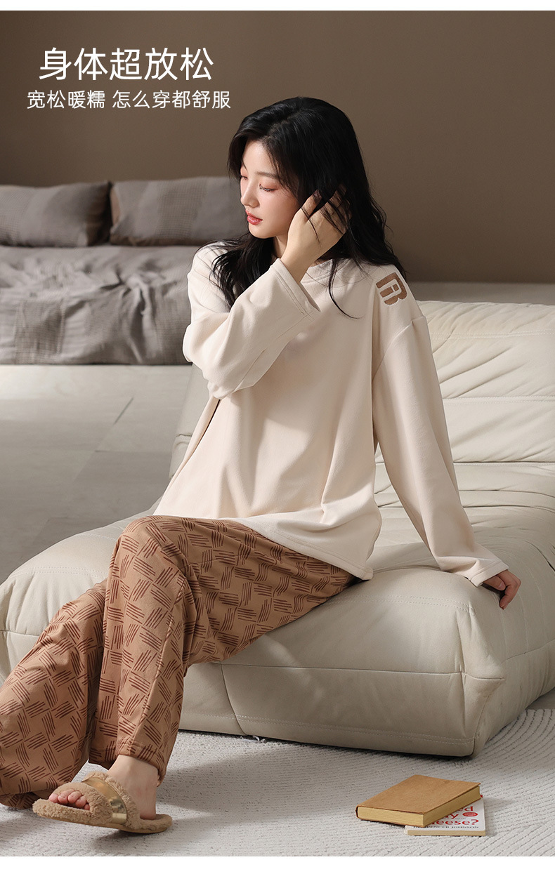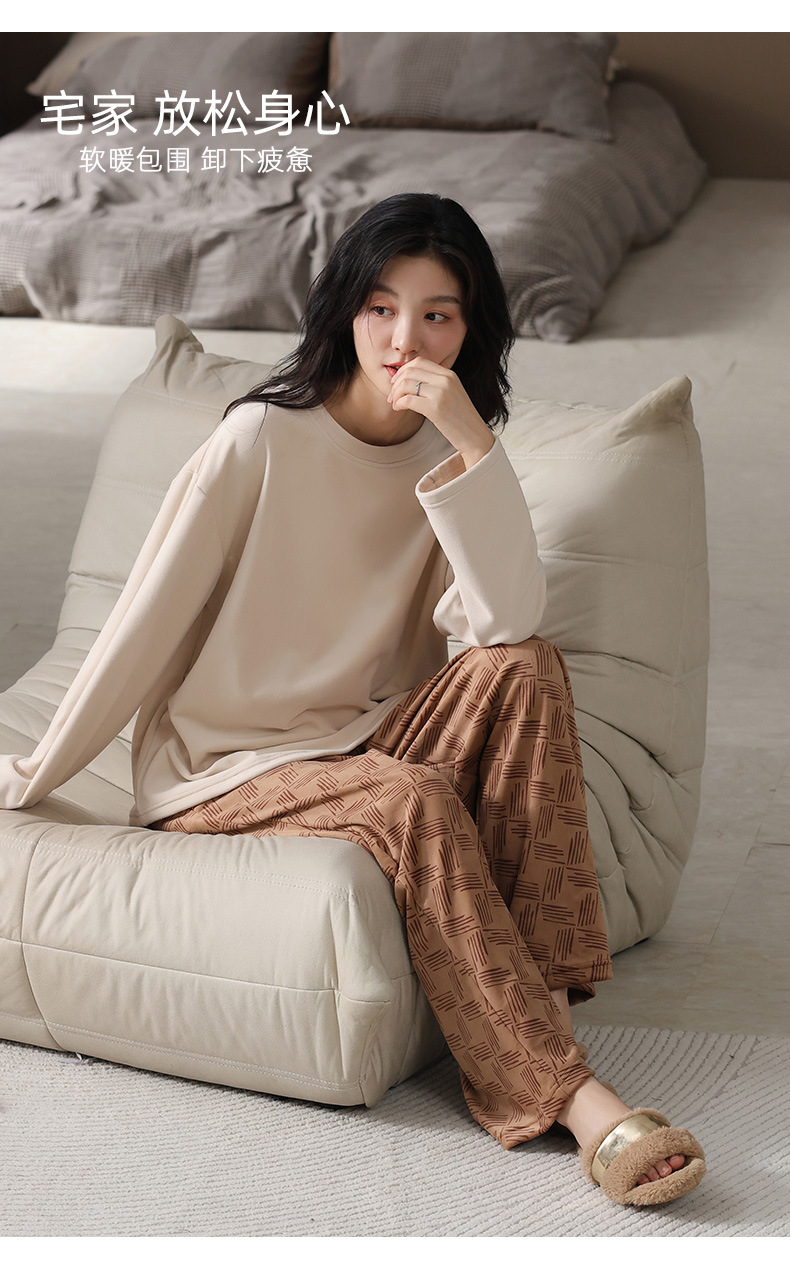 女性のパジャマの新型の海島の絨毛の丸首は頭の純色の大きいサイズをかぶせて厚い加毛の保温の家の服のズボンのスーツをプラスします。