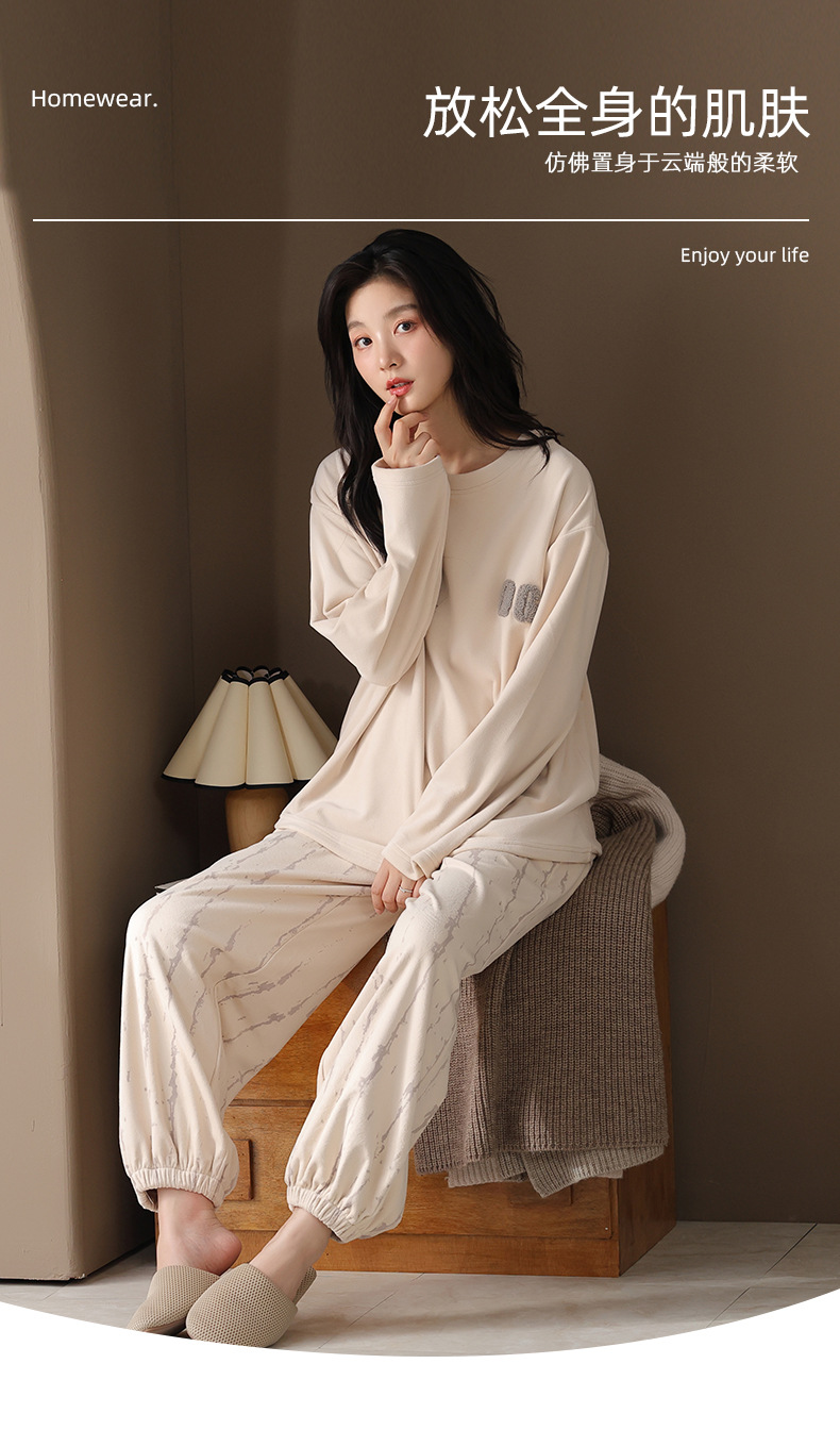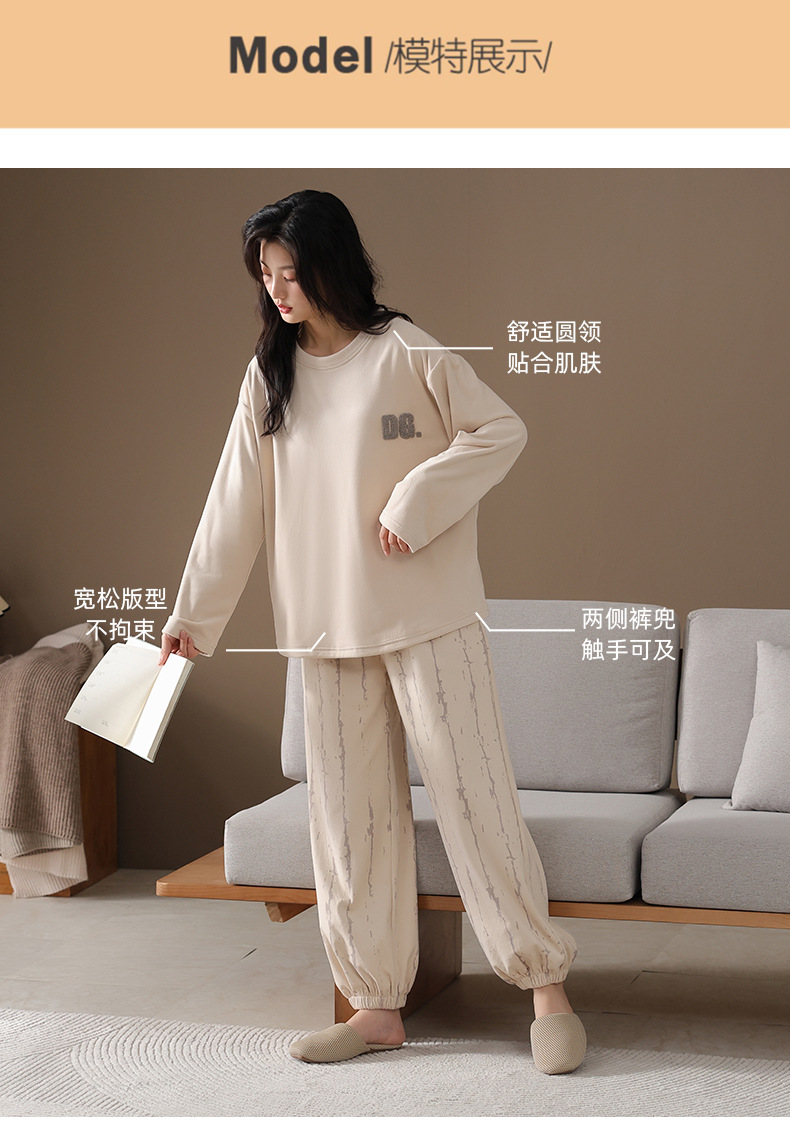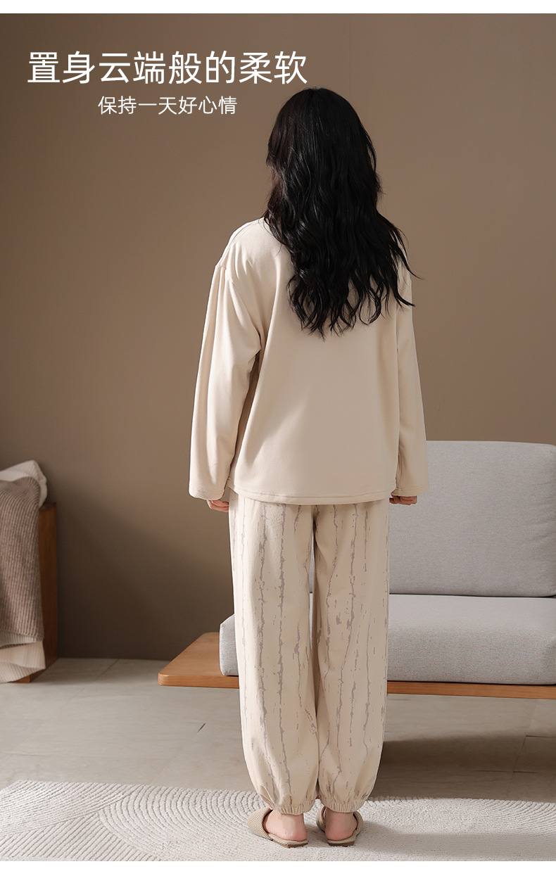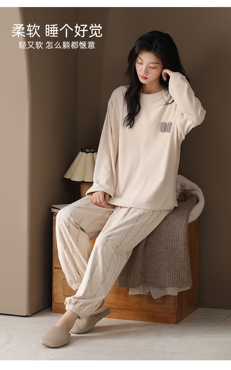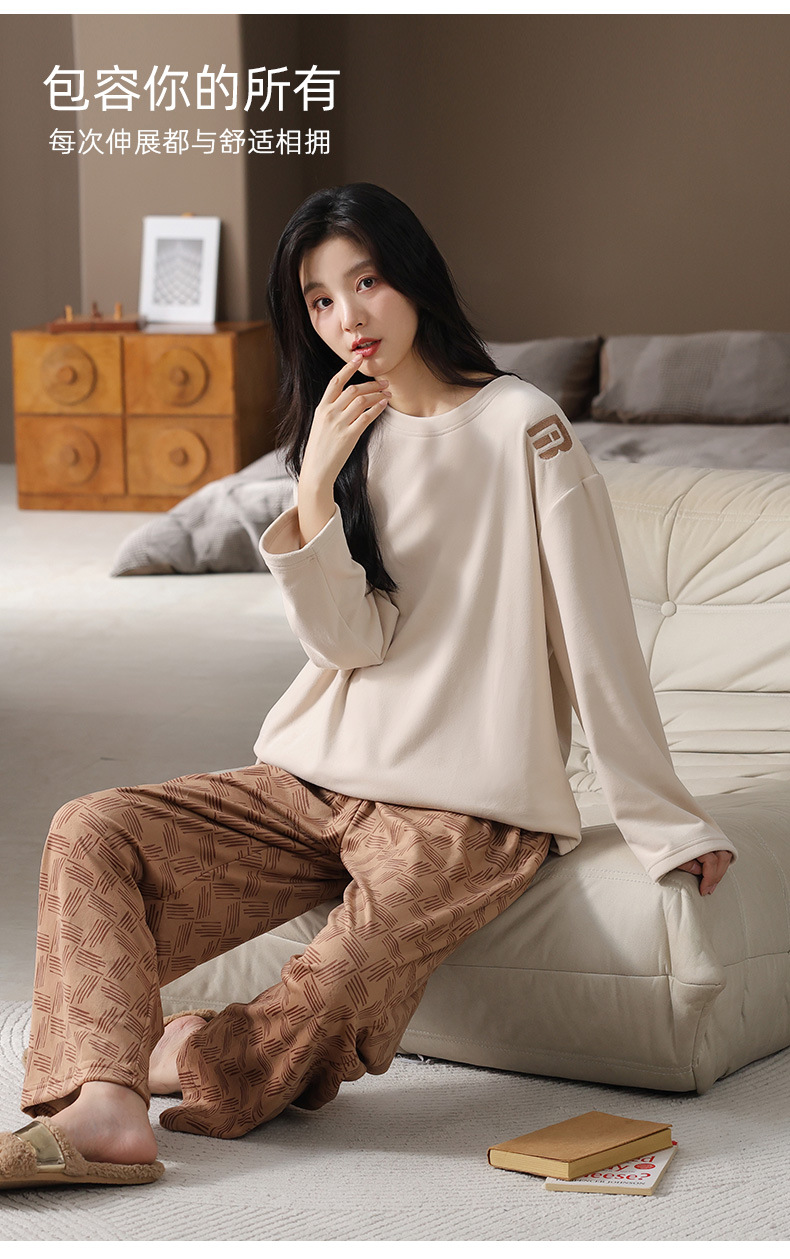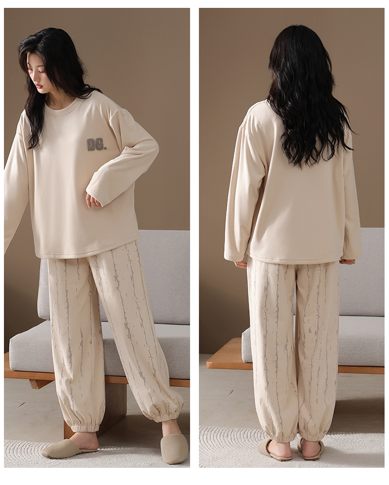 女性のパジャマの新型の海島の絨毛の丸首は頭の純色の大きいサイズをかぶせて厚い加毛の保温の家の服のズボンのスーツをプラスします。