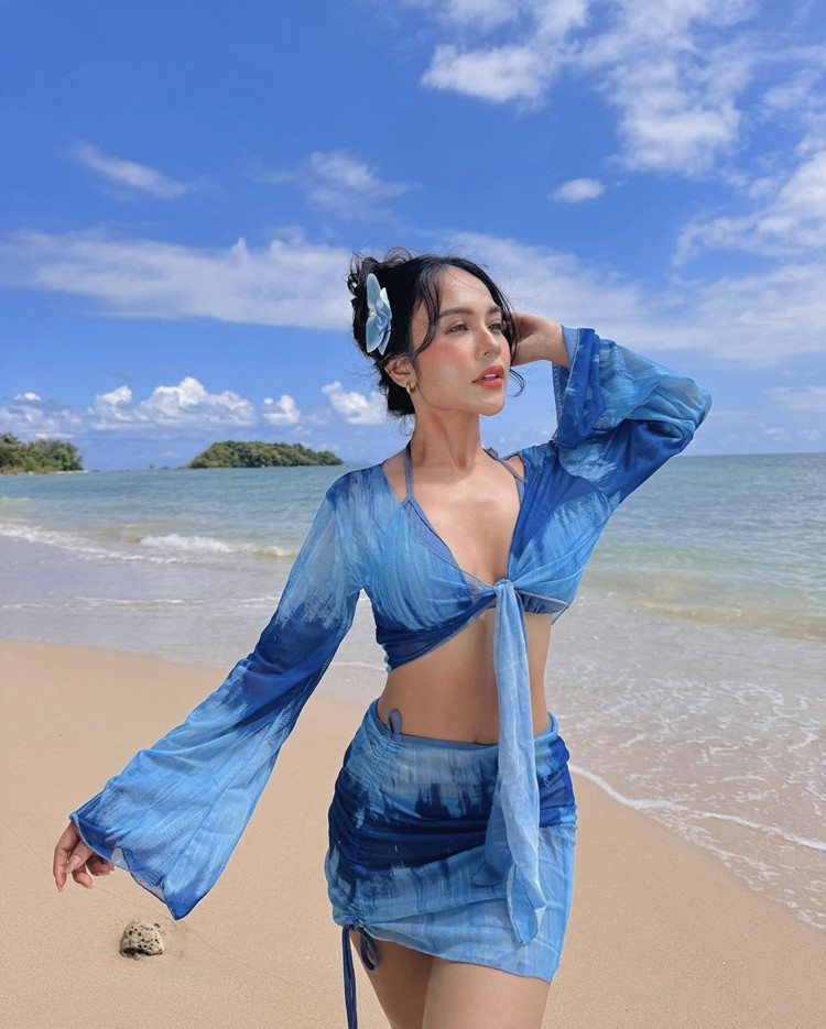 ビキニ三点セット新型保守長袖着痩せ水着女性高級感分体純欲温泉少女水着