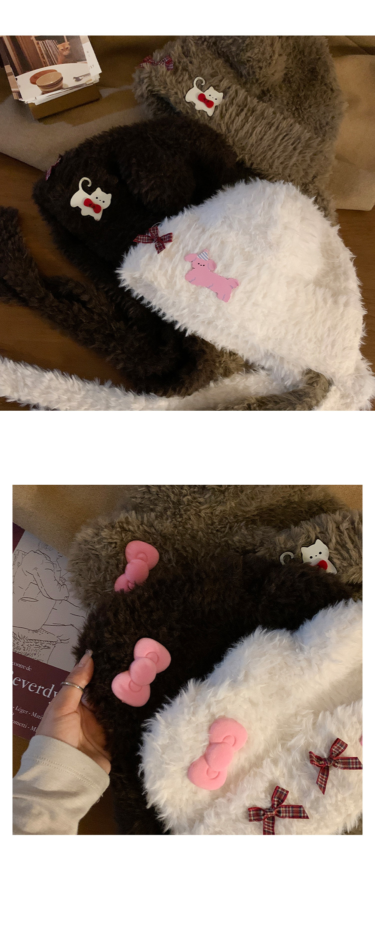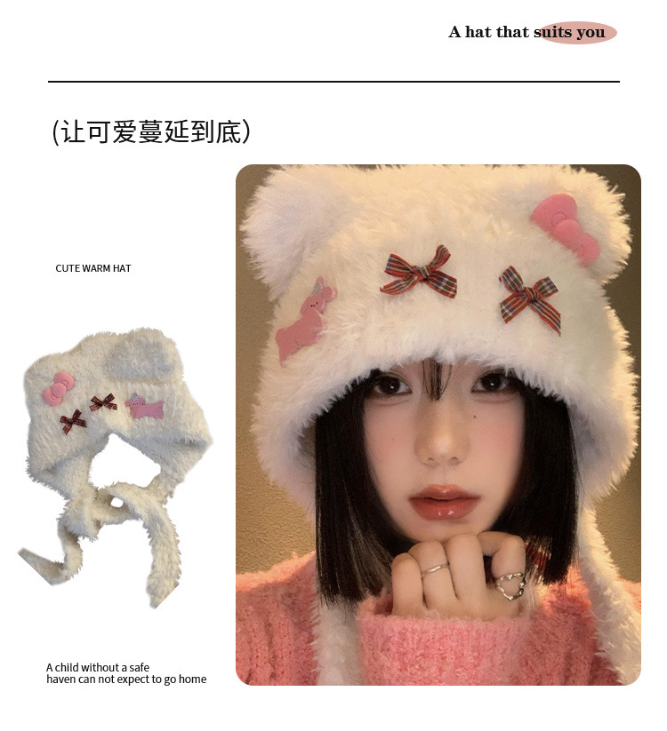 かわいいベアーの耳の蝶結びの毛の帽子の子供の2024年秋冬の保温は顔の小さい耳の雷の前線の帽子を現します。