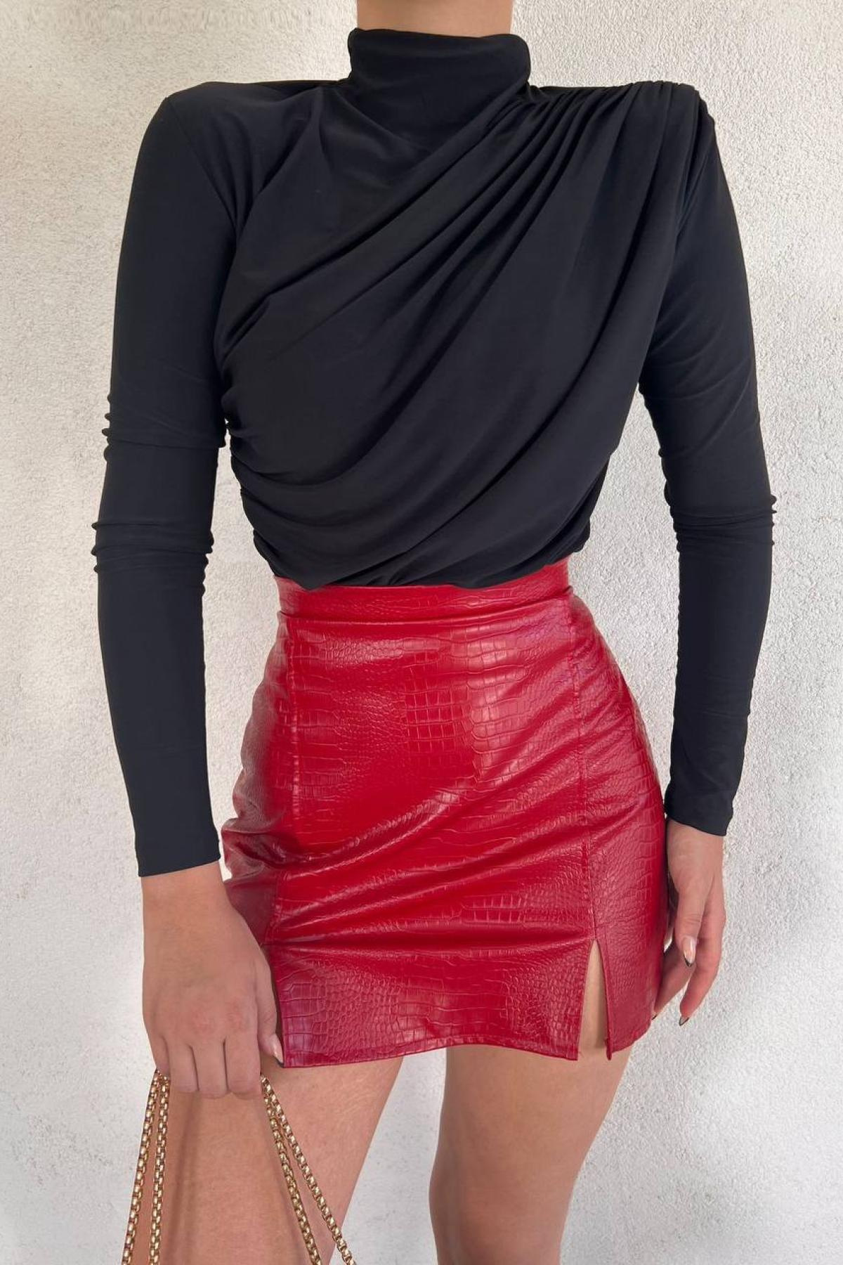 气质高领褶皱设计感长袖辣妹打底衫女秋季紧身内搭显瘦t恤短上衣