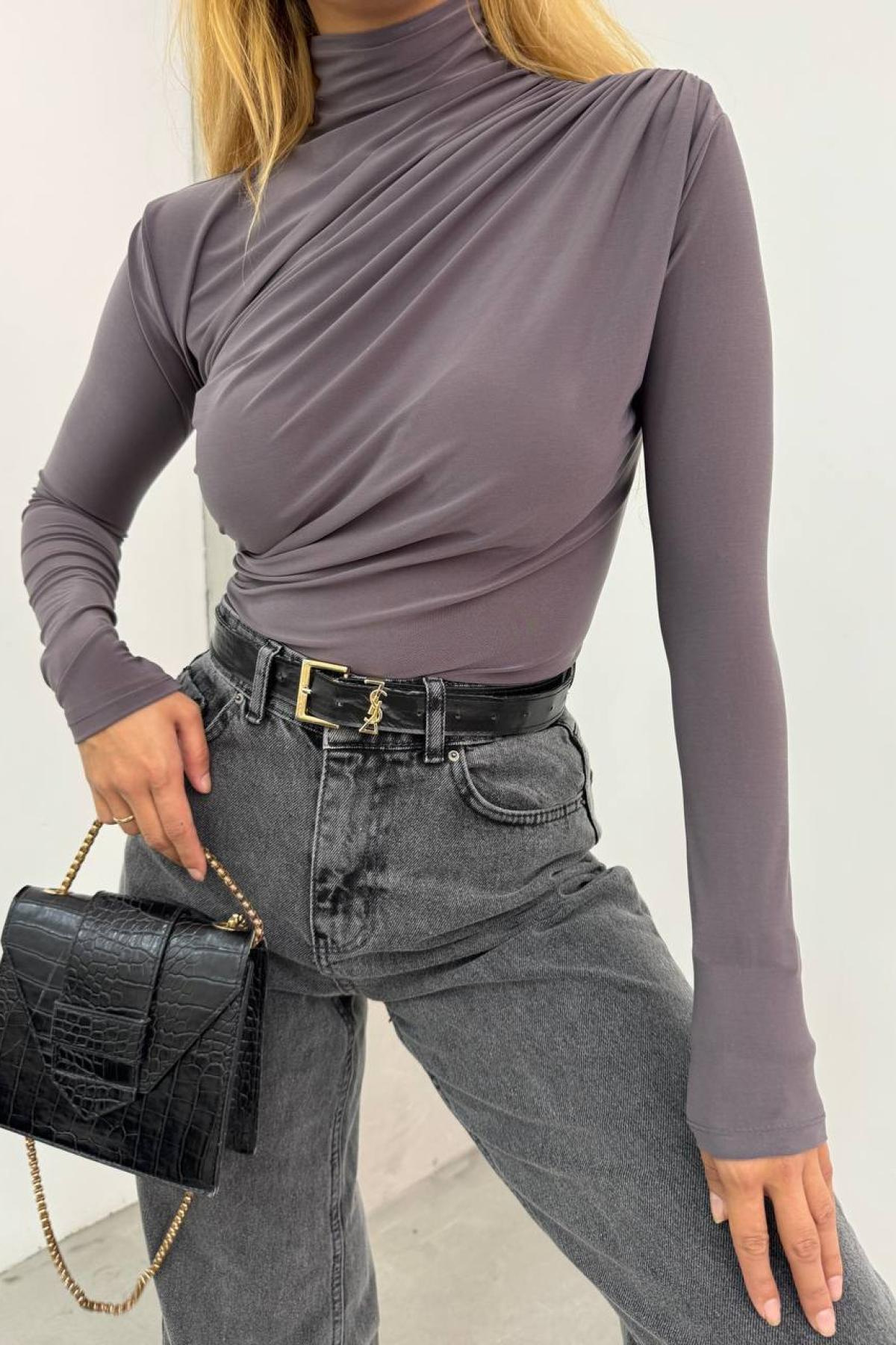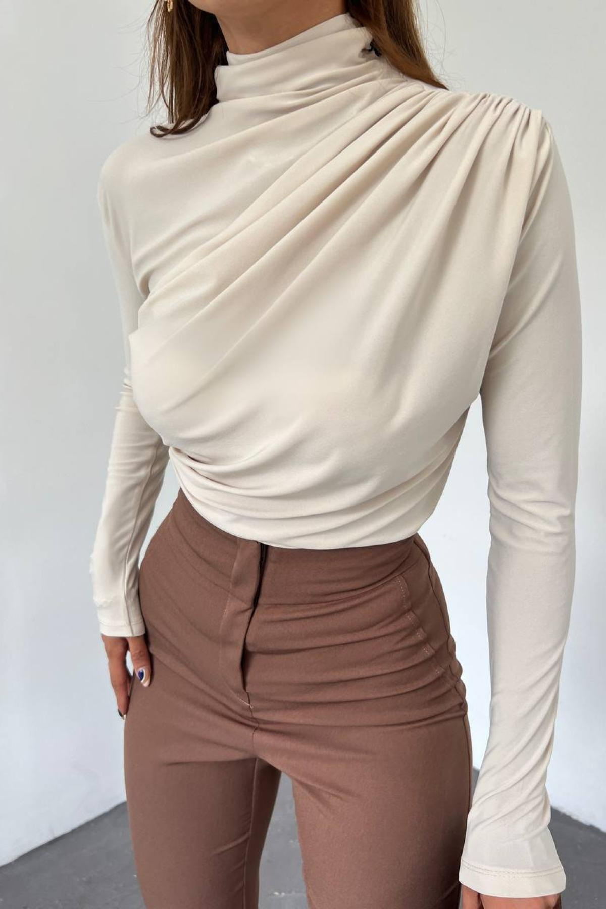 纯欲辣妹小高领套头长袖T恤秋冬新款褶皱设计感弹力修身打底上衣
