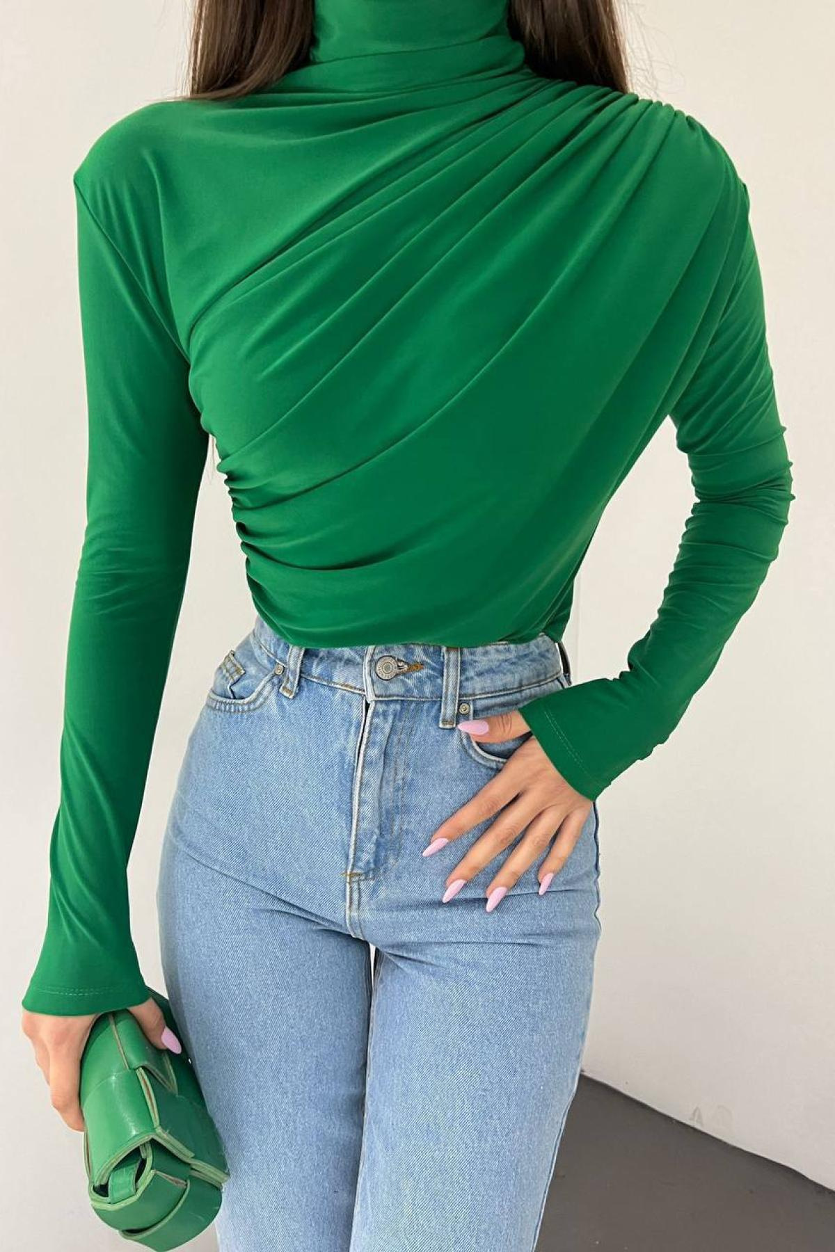 国境を越えた欧米風女装2024秋冬新商品ファッション純色修身しわ高襟長袖上着女性tシャツ