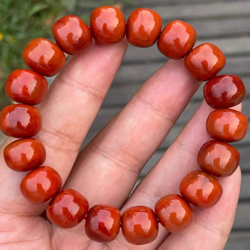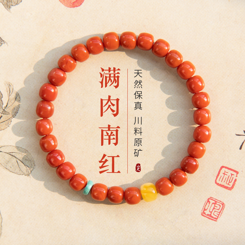 収蔵級天然南紅炎紋柿紅老鉱老型玉手串満色ブレスレット南紅瑪瑙