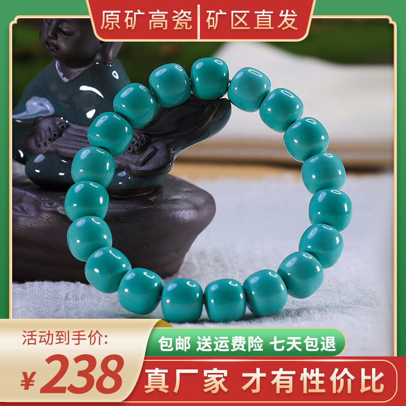 湖北産二級原石高磁性ターコイズ古式桶型ビーズブレスレット男女兼用文玩単環手飾り