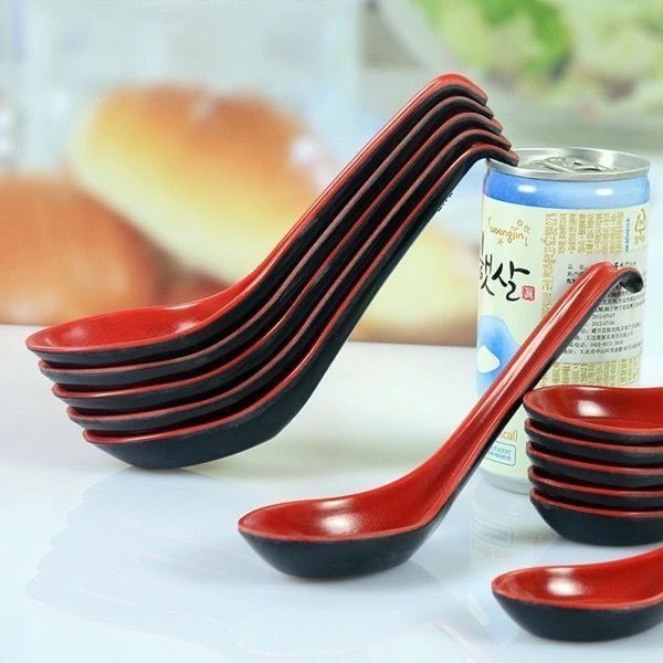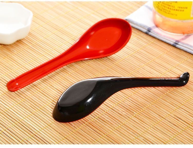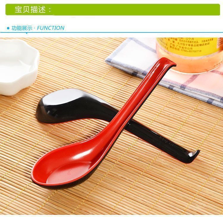 ホテルのメラミンカラースプーン赤黒フックスプーンの長い柄のスプーンは磁器のプラスチックのラーメンのスプーンの家庭用ホテルのスープに似せます。