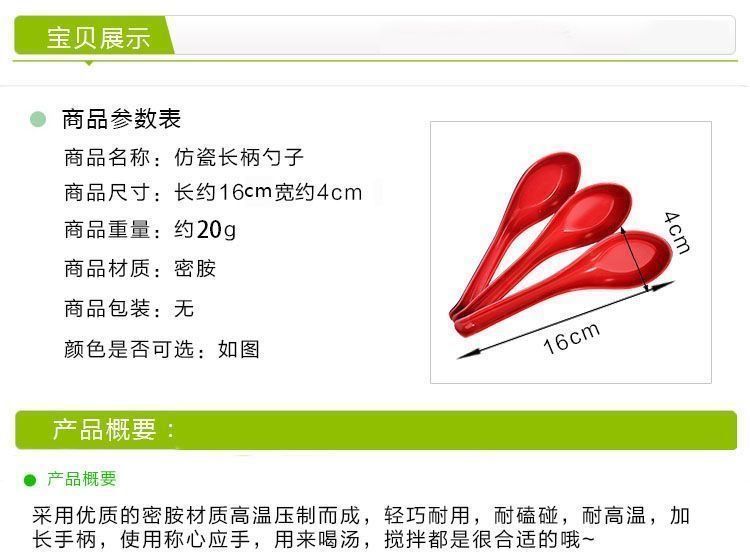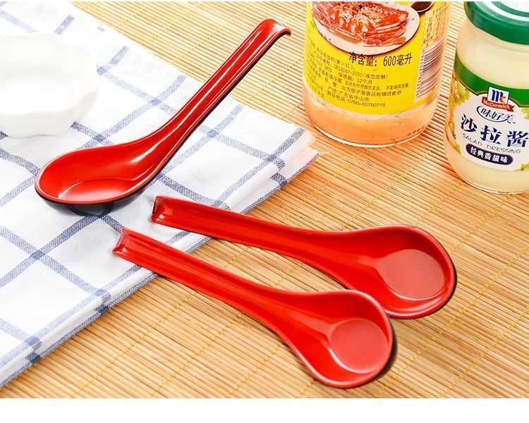 实用红黑色高温密胺勺子仿瓷长柄调羹防滑防烫面条勺喝汤勺