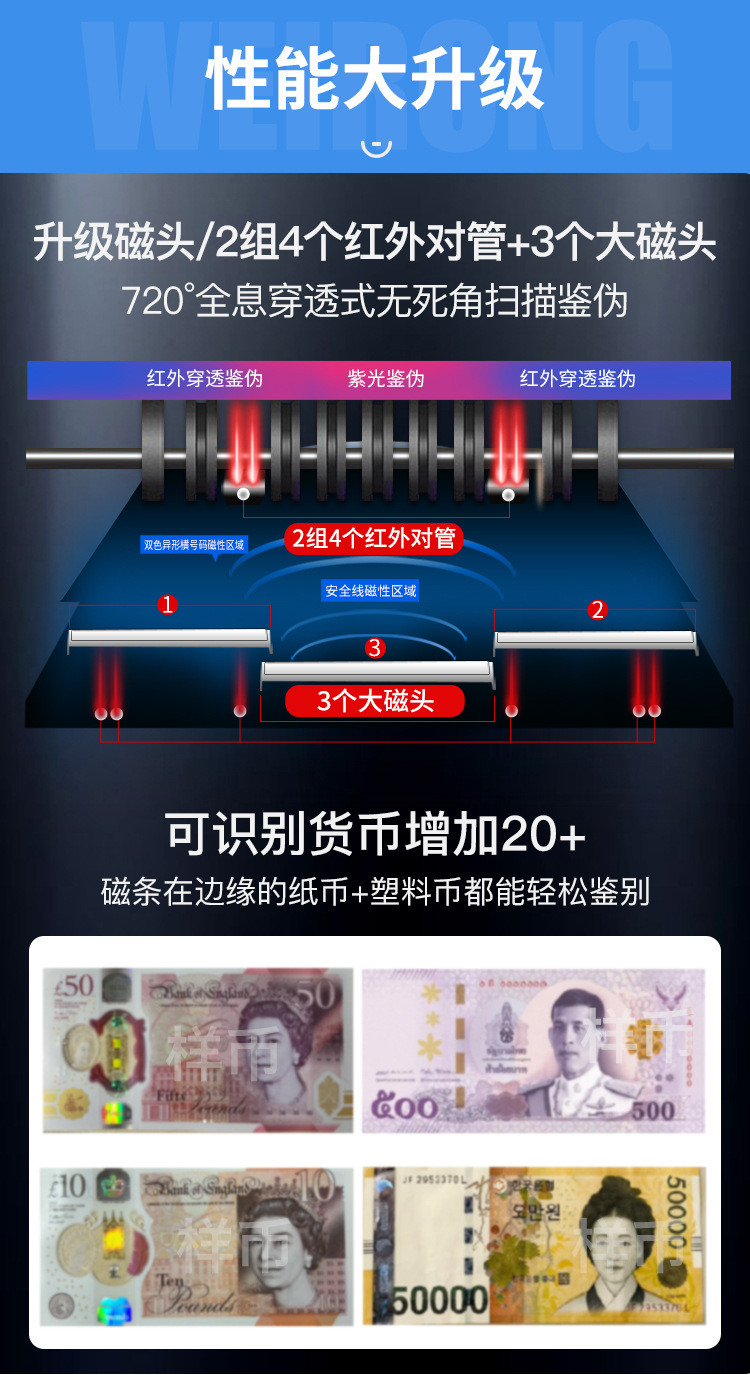 維融5088液晶パネル多国籍通貨ポイント紙幣計数機ドルユーロ外貨国際版対外貿易用