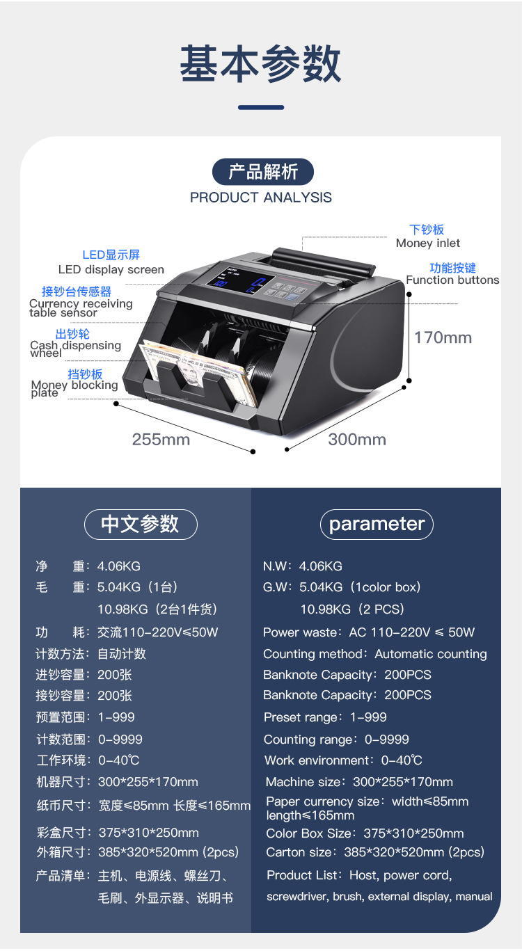 2108 多通貨対応紙幣計数機、米ドル、ユーロ、外国通貨対応、国際版、越境貿易用