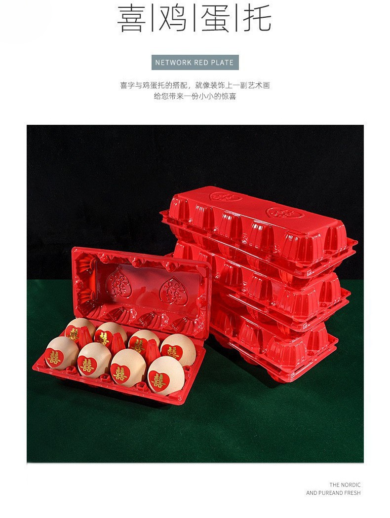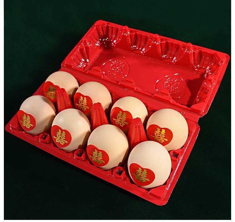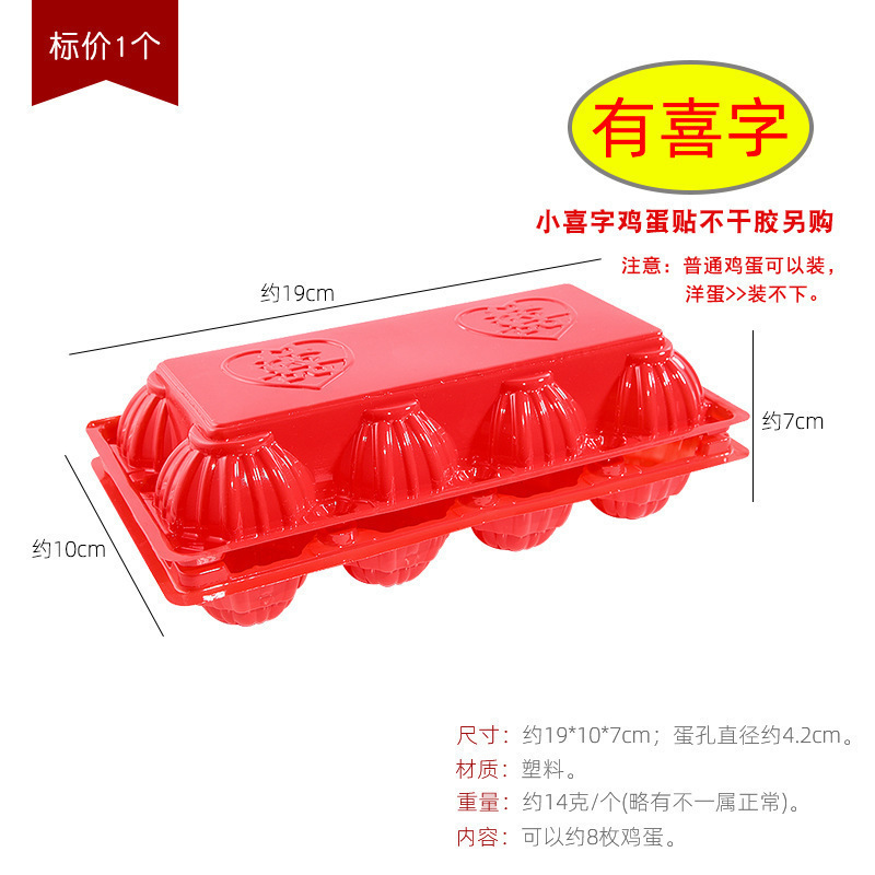 結婚6枚8枚赤い喜字プラスチック卵托喜卵包装箱使い捨てトレイ満月お返し箱