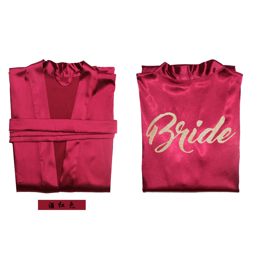 花嫁の花嫁の女性の朝の服の結婚式のシルクの誕生日の親友のパーティーのパジャマは刺繍の赤い寝の服の結婚の朝の服に腹ばいになります。