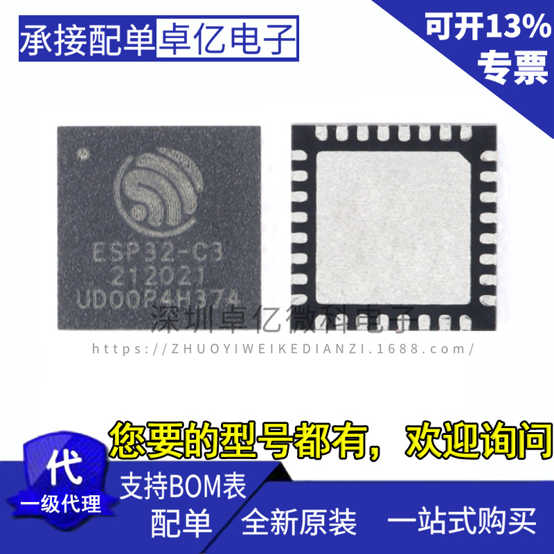 ESP32-C3FH4 封装QFN32 原装MCU系统级芯片SoC 集成2.4GHz Wi-Fi