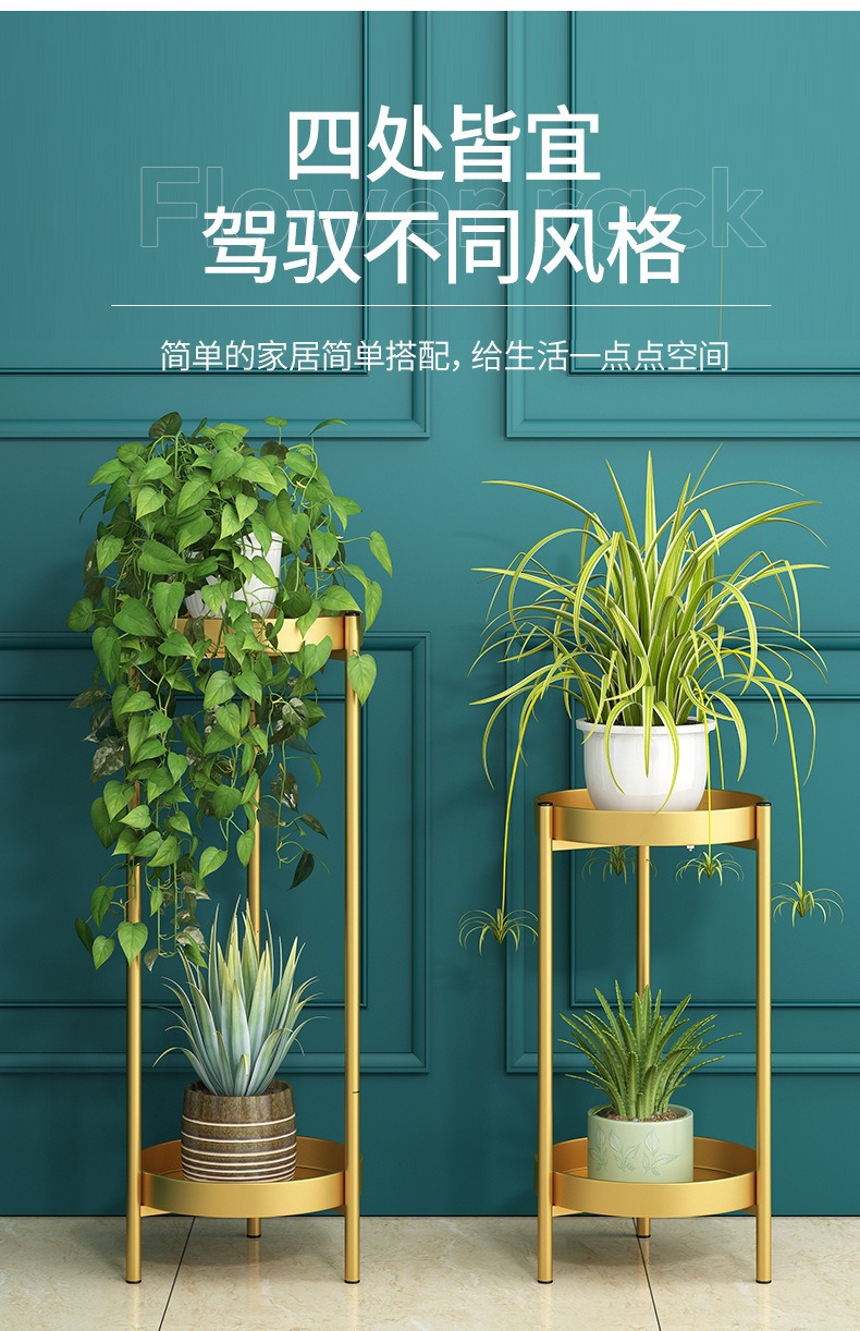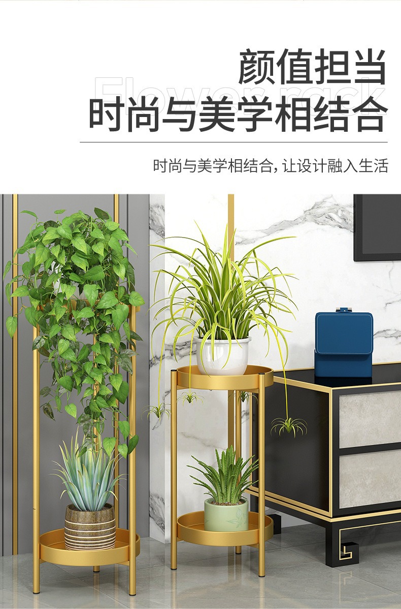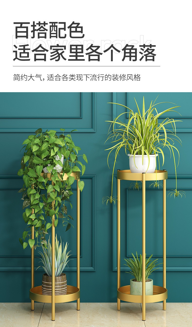 軽くて豪華な多層のベランダの花棚の室内のハイエンドの客間の緑のロリの床につく式の物棚の鉄芸の多肉の植木鉢の棚