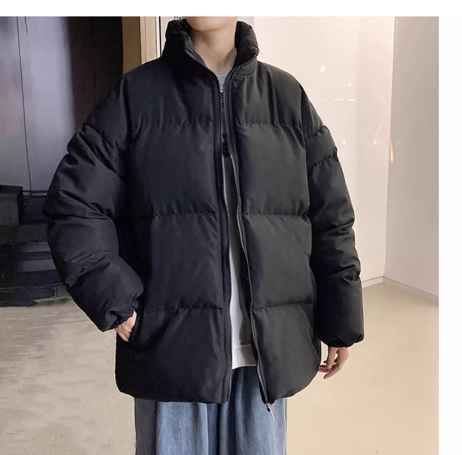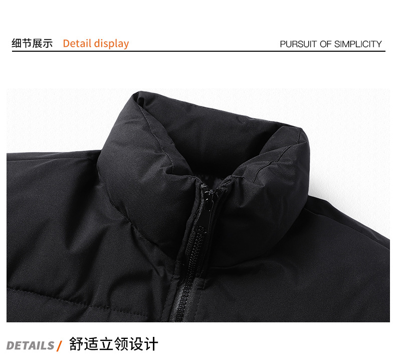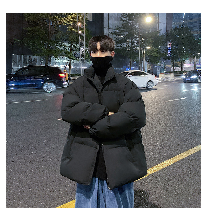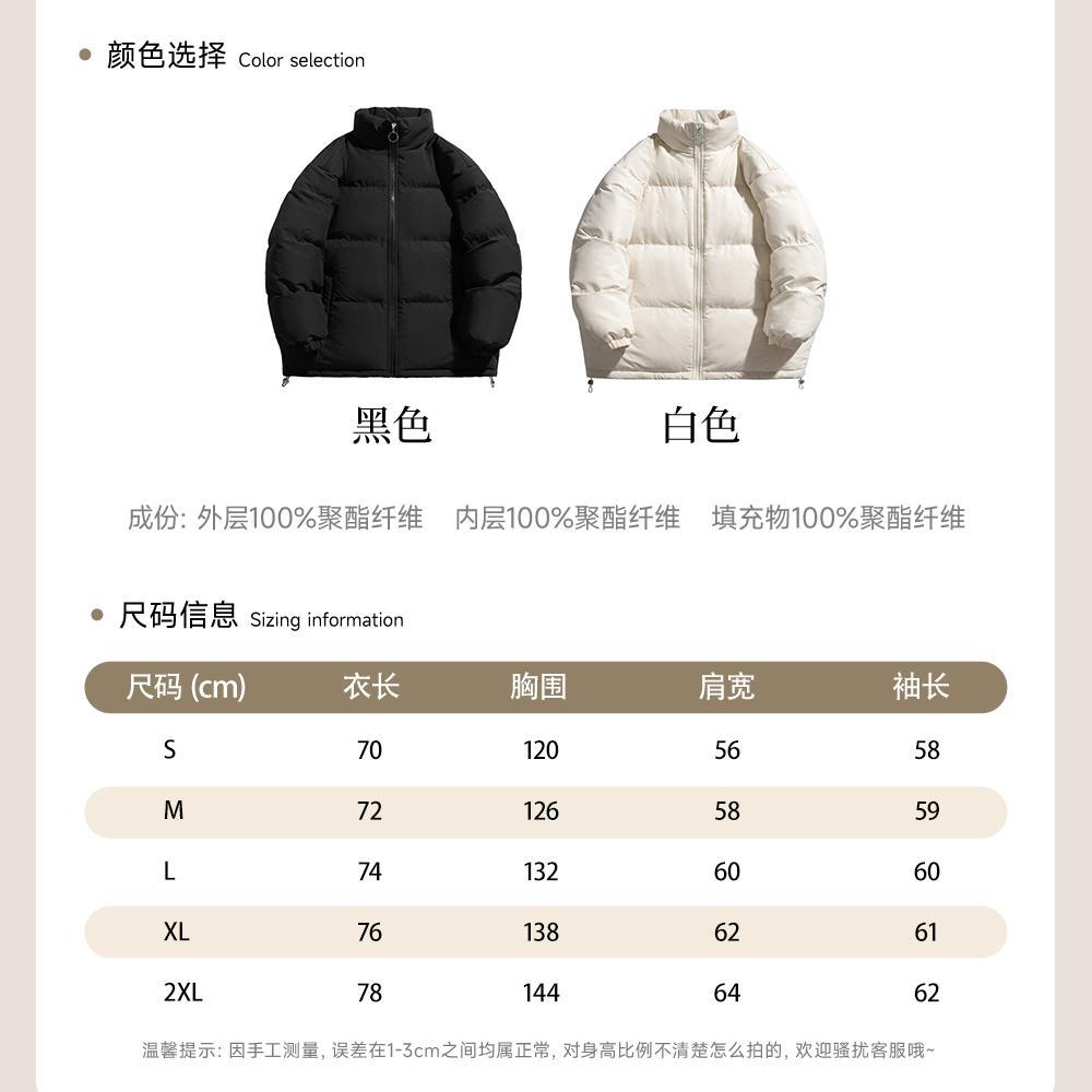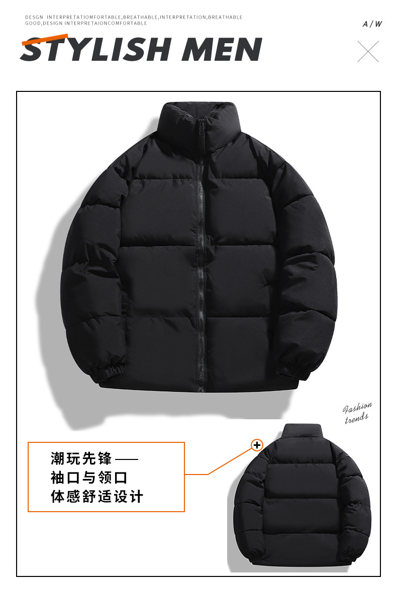 秋冬高领棉衣加厚加绒外套男新款色棉袄羽绒服情侣装面包服黑色