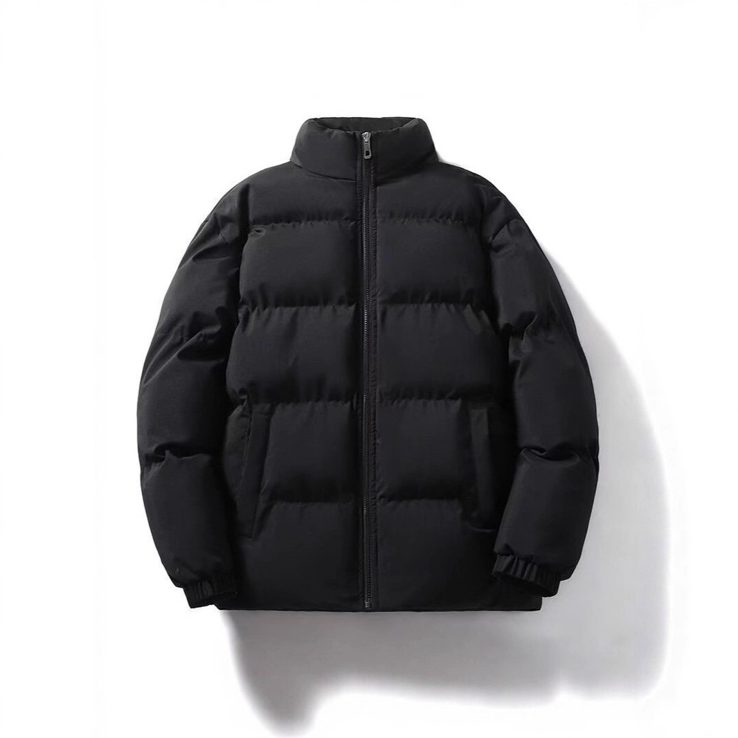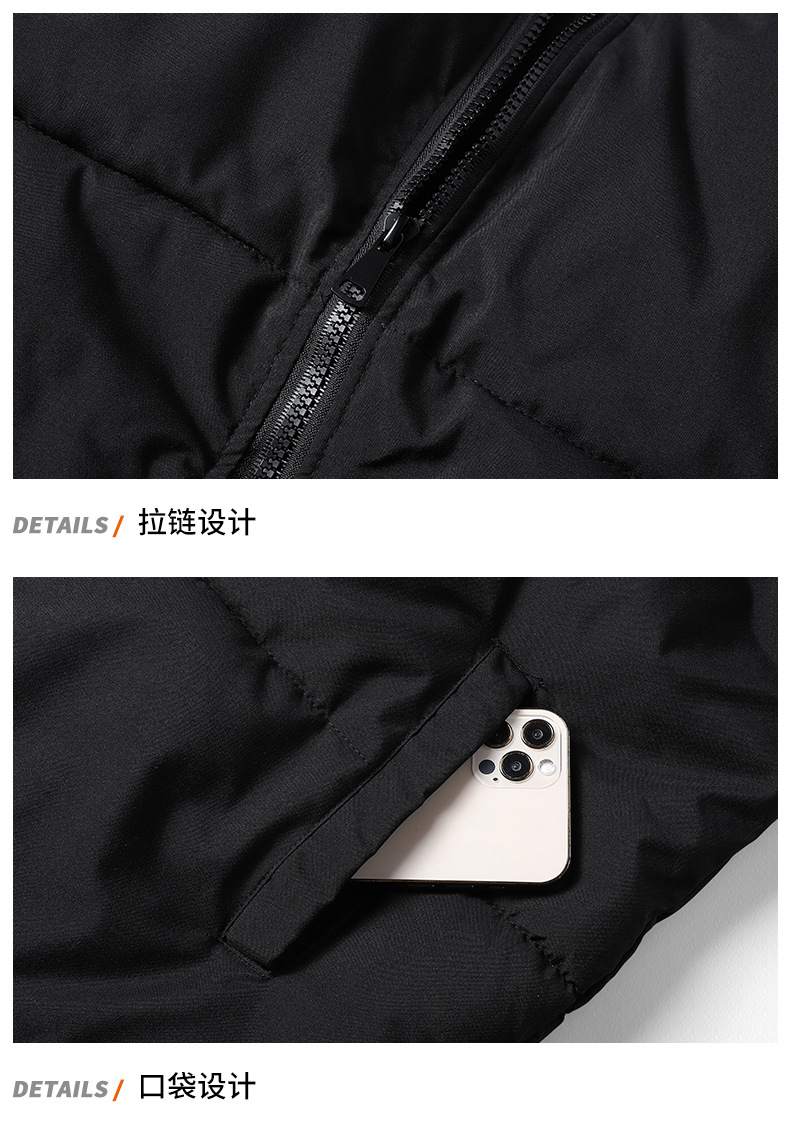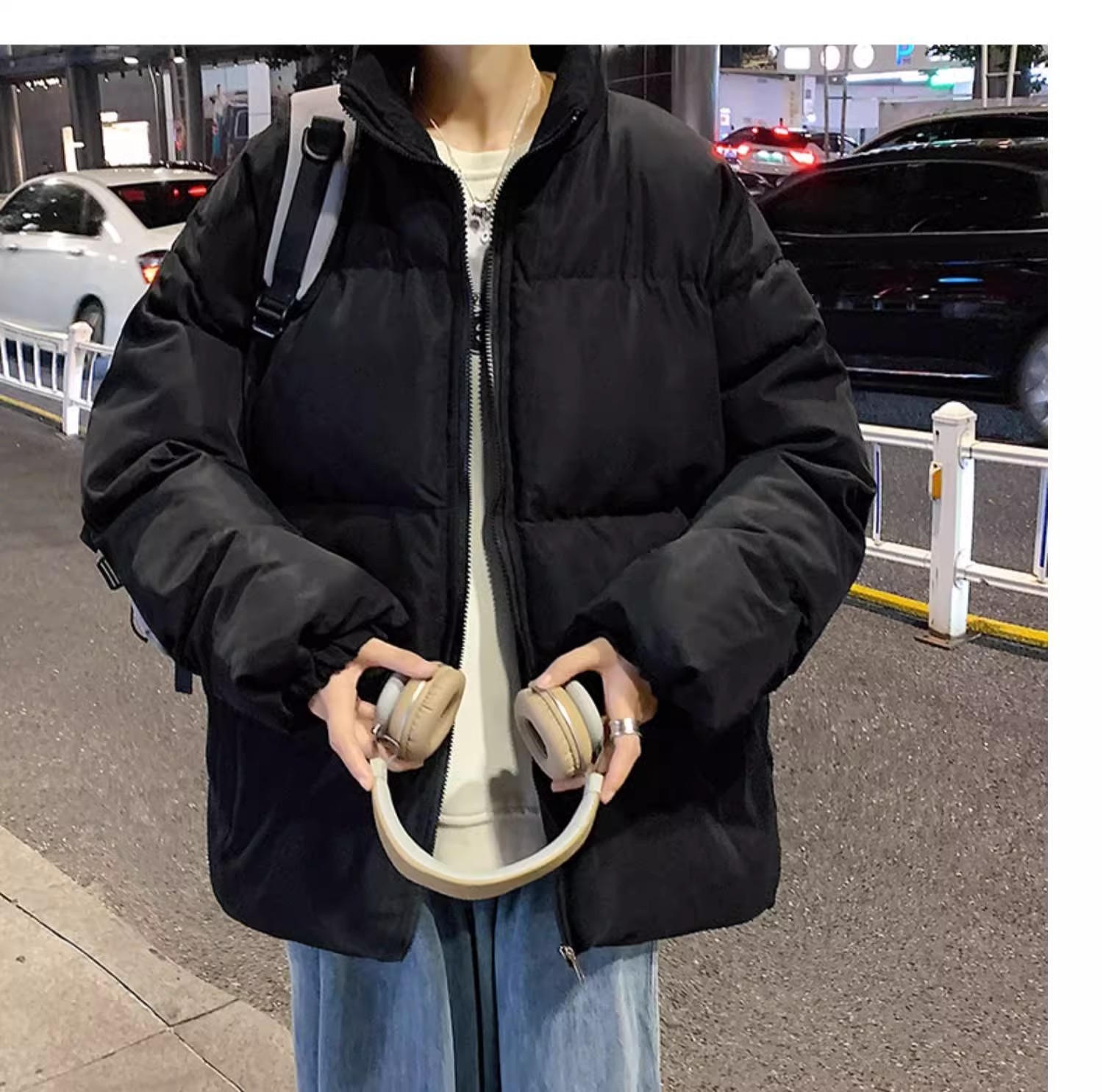 秋冬高领棉衣加厚加绒外套男新款色棉袄羽绒服情侣装面包服黑色