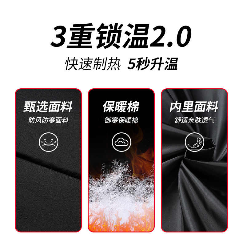 メンズ長袖黒色裏起毛純綿トップス、ラウンドネック、秋冬用インナーウェア