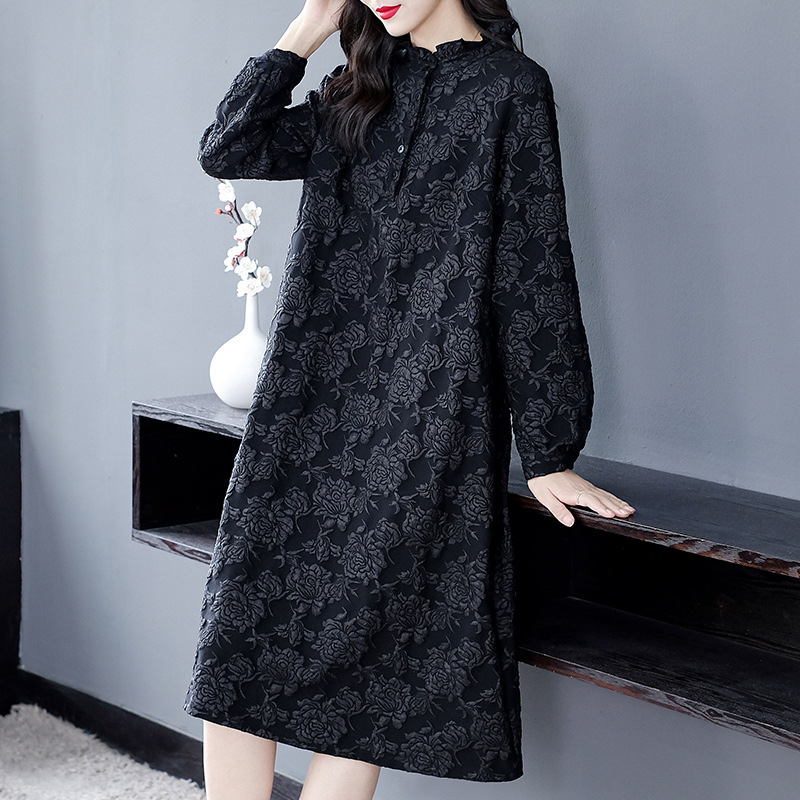 秋冬色織ジャカードレトロ小衆ワンピースおしゃれ洋風大サイズ中高年女装インナー着痩せスカート