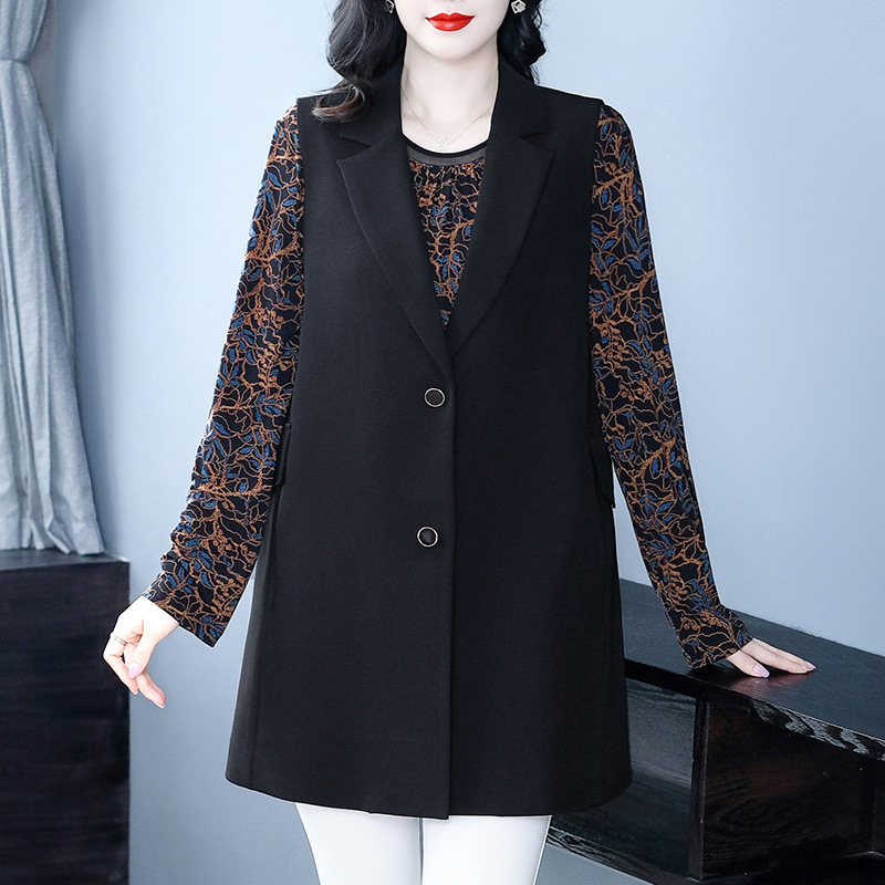 2024秋冬の軽熟百合外着の大きいサイズのゆったりしたスーツのカジュアルなベストの太ったMMは中年のお母さんの婦人服に乗ります。