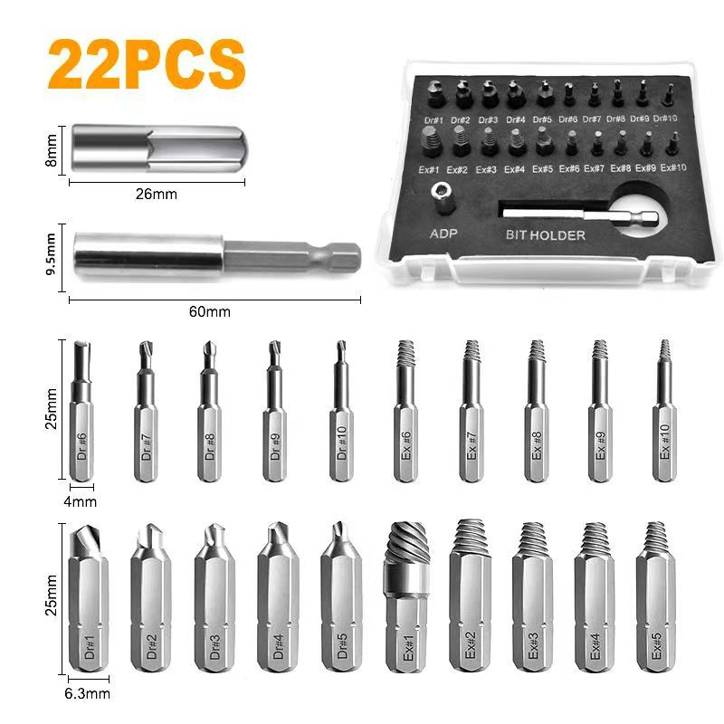 小号断裂损坏螺丝取出器套装英制22pcs螺钉拆卸跨境高速钢DR-1-10