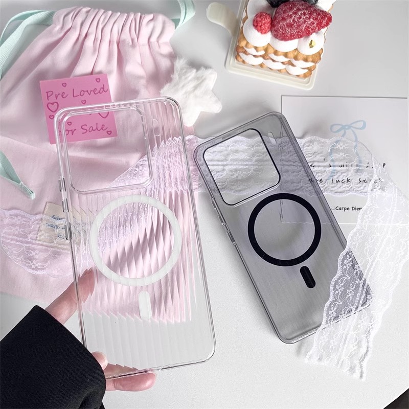 波形格子パターン Xiaomi 15 携帯電話ケース磁気つや消しアイスミスト 15 超透明保護カバーハード PC に適しています