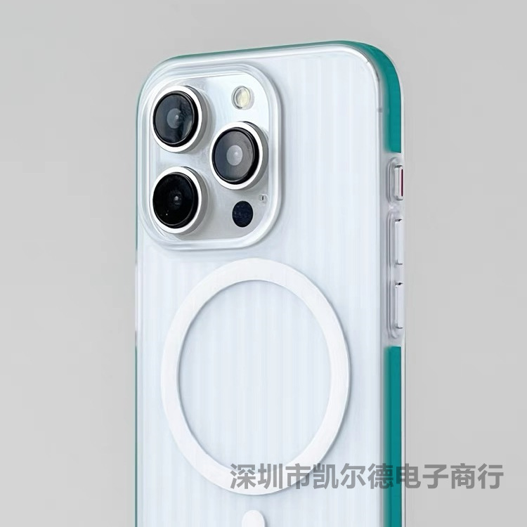 iPhone15携帯電話ケース、Apple 14promax、トレンディな16eに適した、波型ストライプの肌のような質感のマットハードシェル磁気吸着ケース