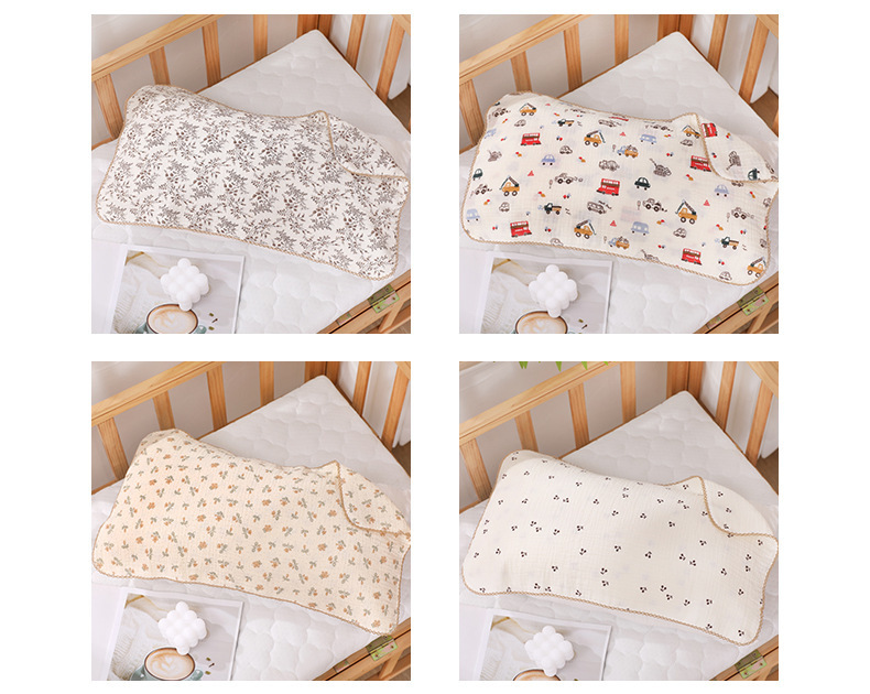 子供用枕カバー、6層ガーゼ、漫画柄、ベビー用綿ガーゼ枕カバー、柔らかく快適、吸汗性、通気性のある枕カバー