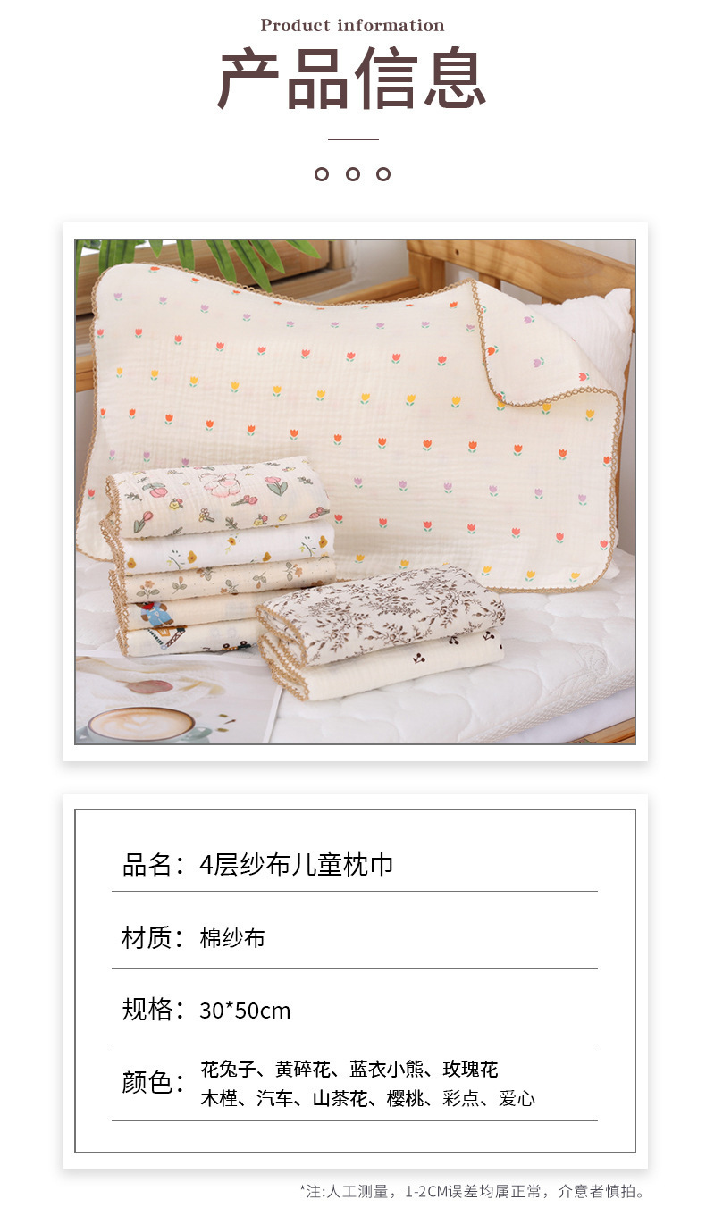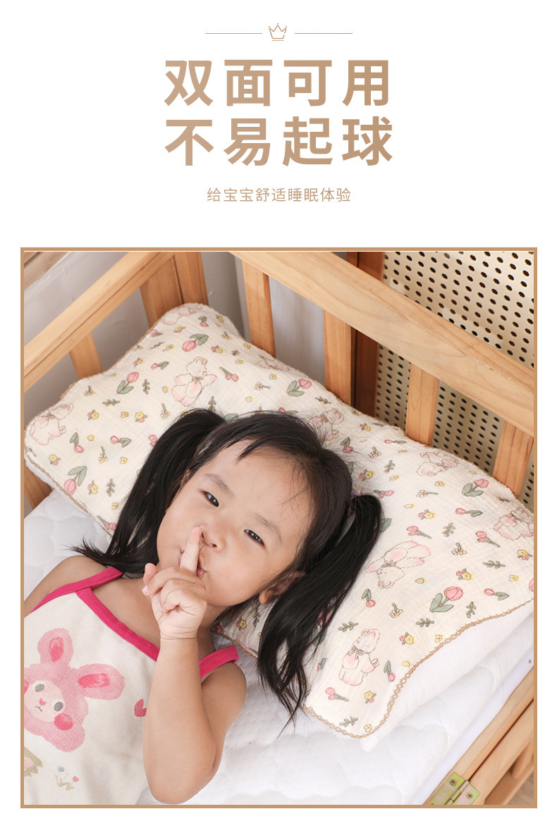 四段子供用枕タオル純綿a類かわいい漫画枕ヘッドタオル新生児吸汗通気性枕カバー