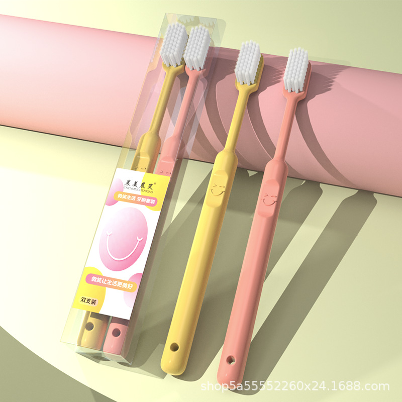 热款晨美晨笑PET盒双支装笑脸牙刷家用情侣软毛牙刷扬州厂家
