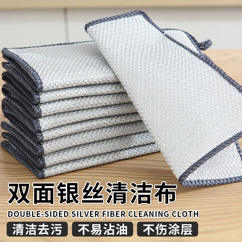 家庭用キッチン用三層銀線たわし、ステンレスメッシュ食器洗い布、焦げ付き防止オイルスチールワイヤーボールクリーニングクロス、耐油性