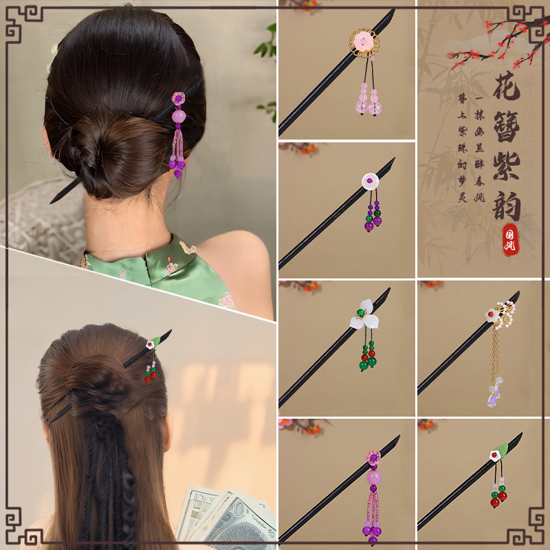 古风发簪仿黑檀木头饰盘发流苏斜切挽发木簪子旗袍汉服配饰批发女
