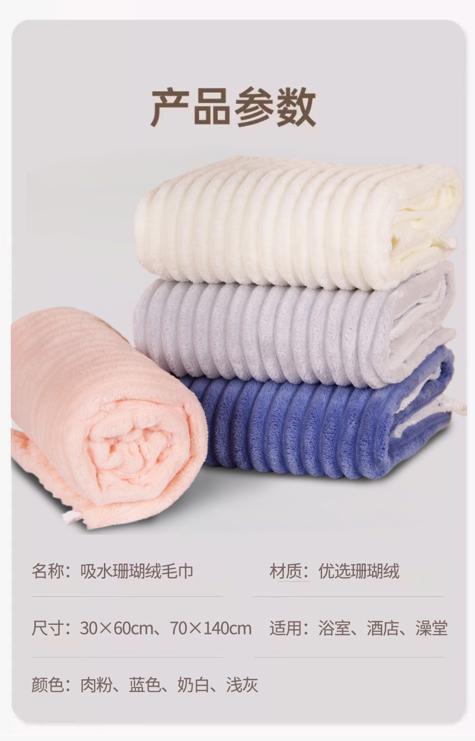 在庫あり卸売コーラルベルベットキャンディストライプタオル大人用家庭用バスタオル吸水性厚手フェイスタオル毛抜けなし縁取り済み