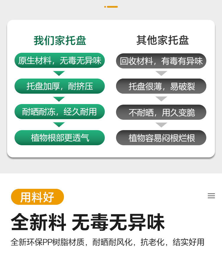 厚みのある水切り波型の花鉢トレイ、花鉢底板、排水・通気性があり根腐れ防止