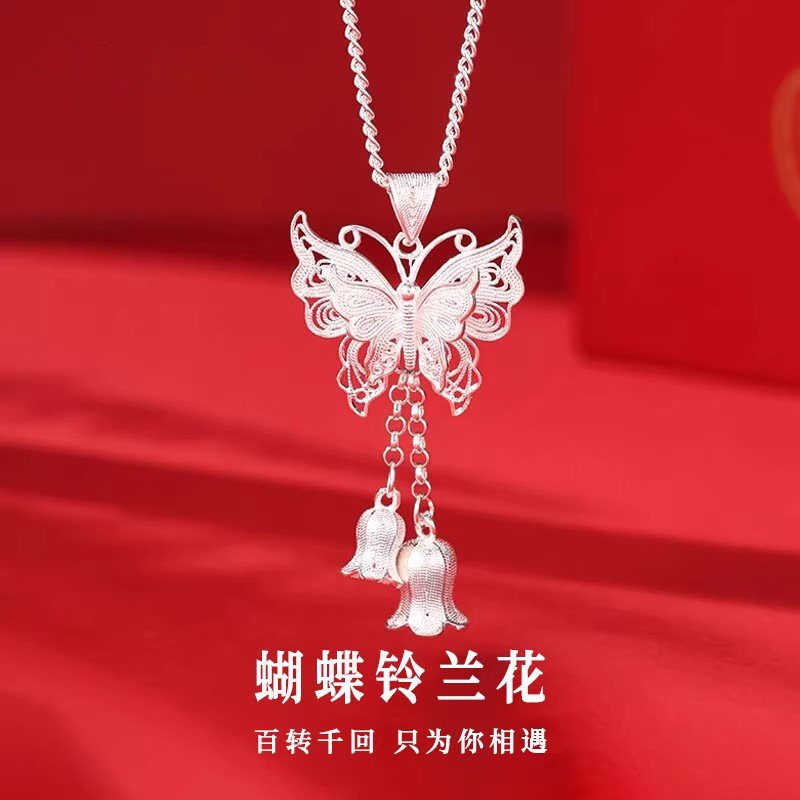新款复古高级感蝴蝶铃兰花丝流苏小众百搭项链吊坠女国潮风锁骨