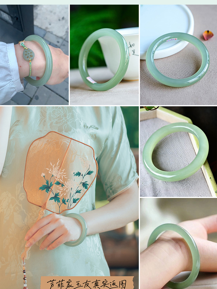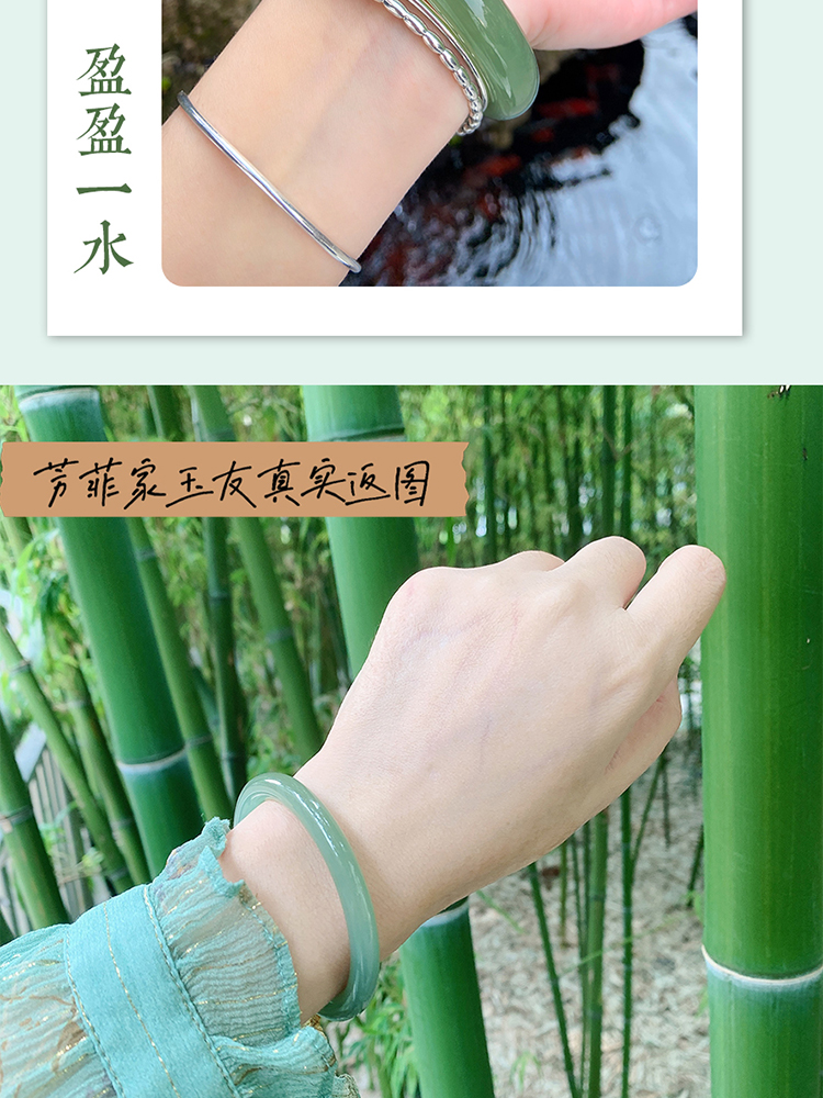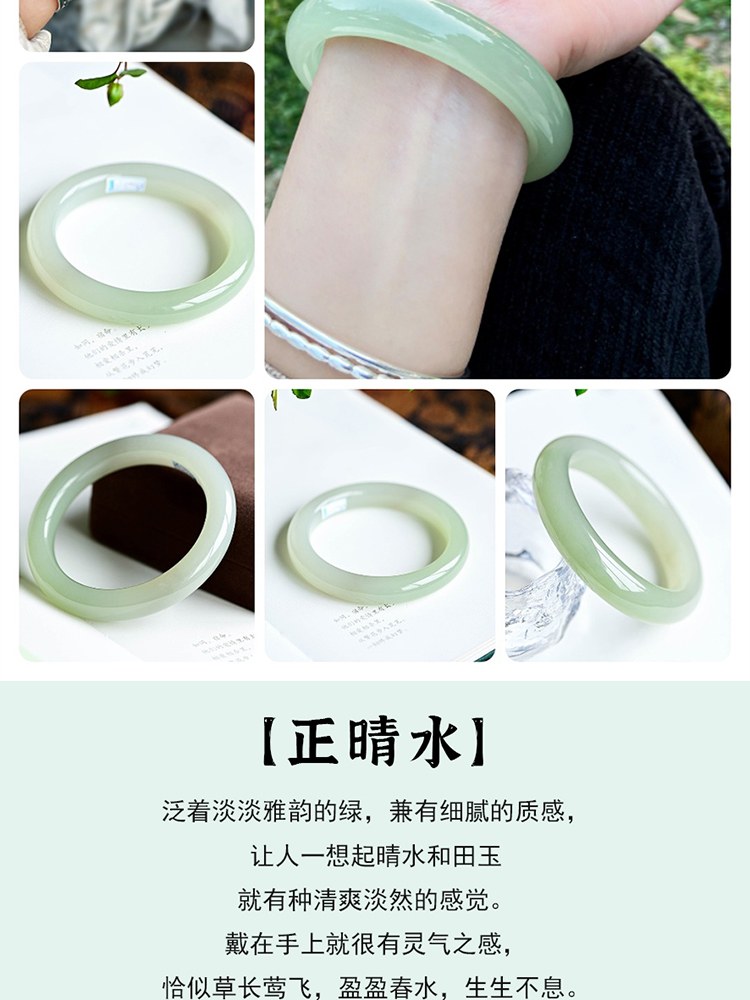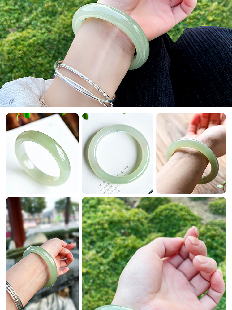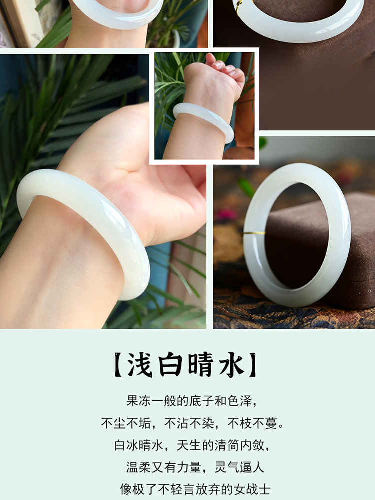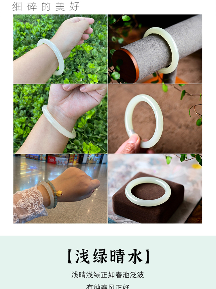 本場新疆天然和田玉ブレスレット女性モデル晴水氷種青白玉ブレスレット湖水緑円条翡翠玉