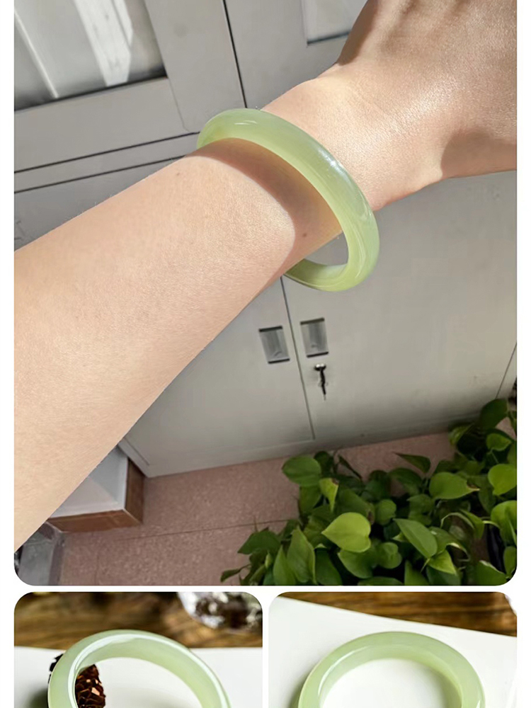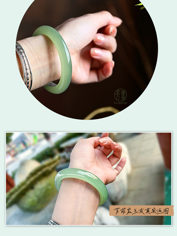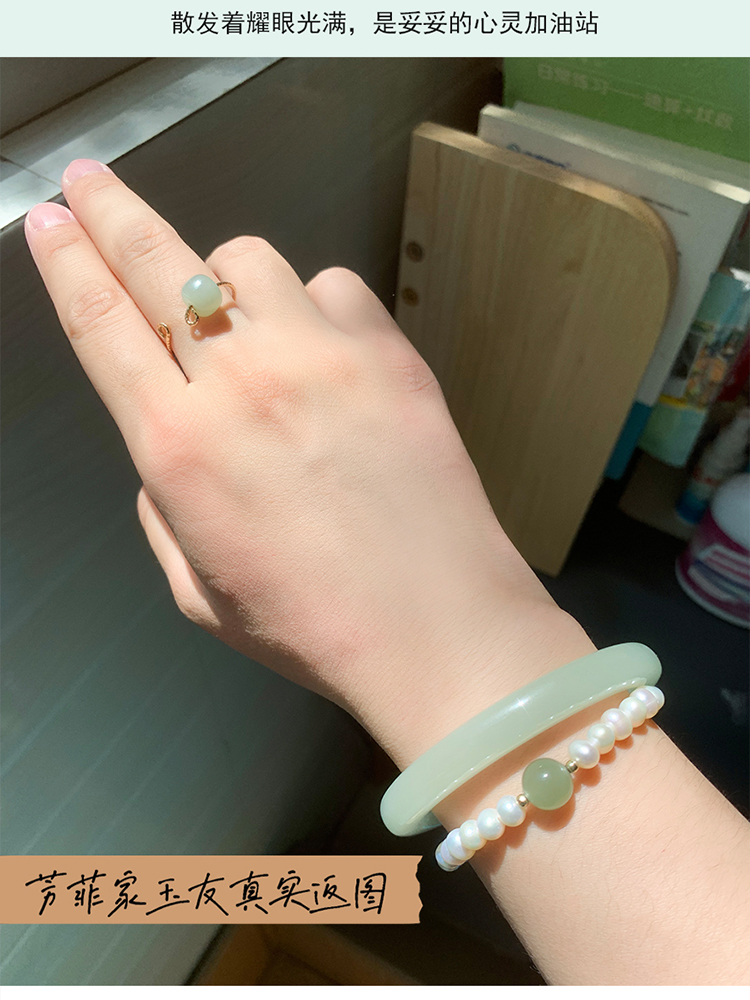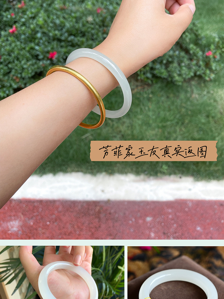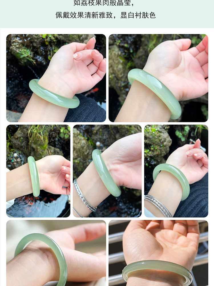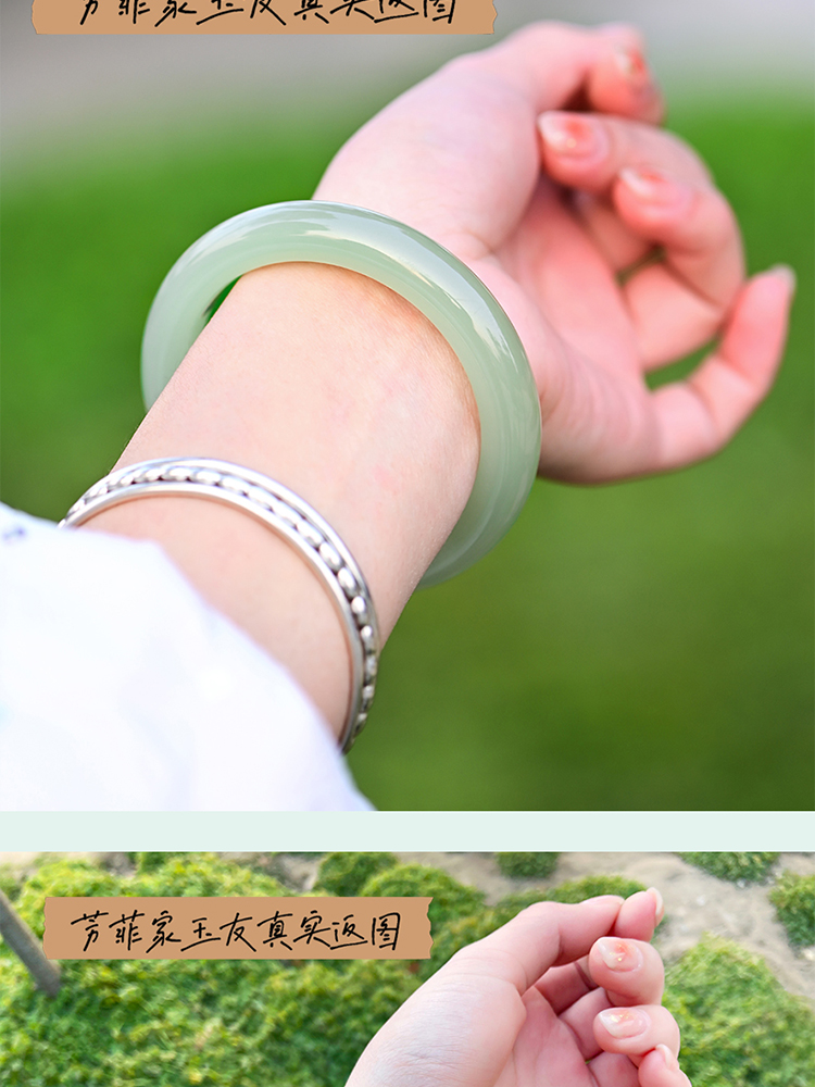 本場新疆天然和田玉ブレスレット女性モデル晴水氷種青白玉ブレスレット湖水緑円条翡翠玉