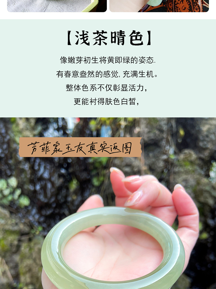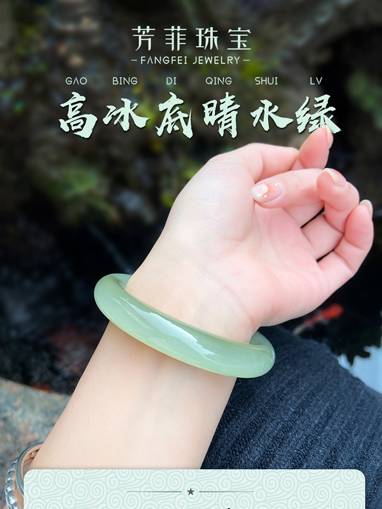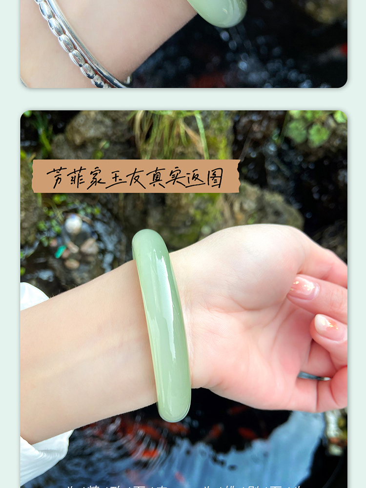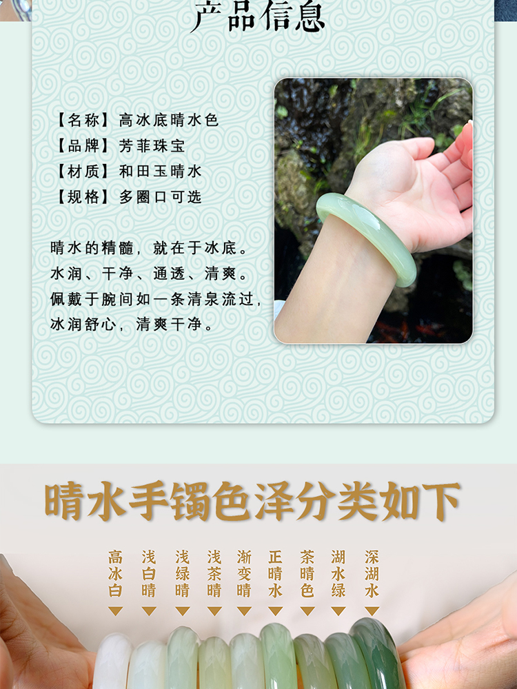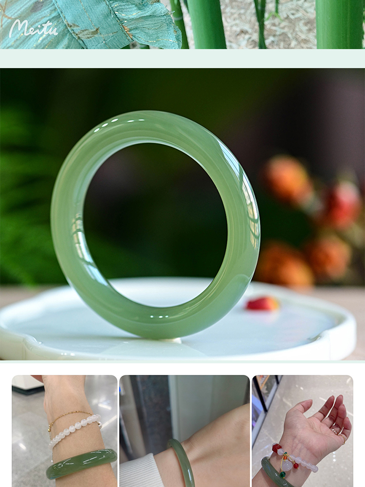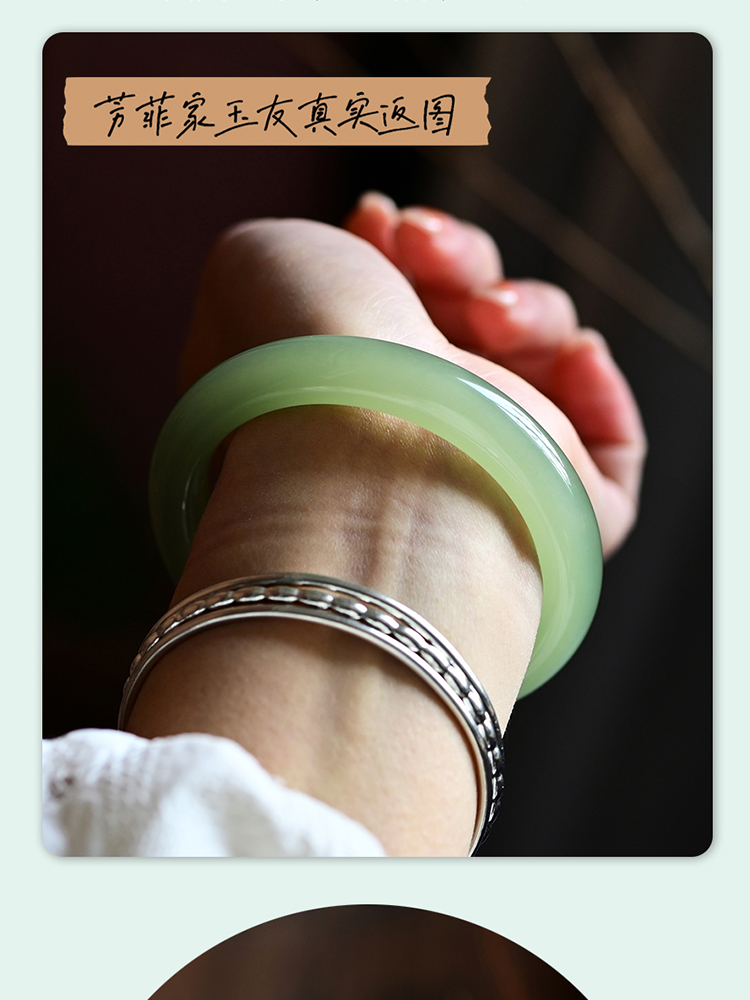 本場新疆天然和田玉ブレスレット女性モデル晴水氷種青白玉ブレスレット湖水緑円条翡翠玉